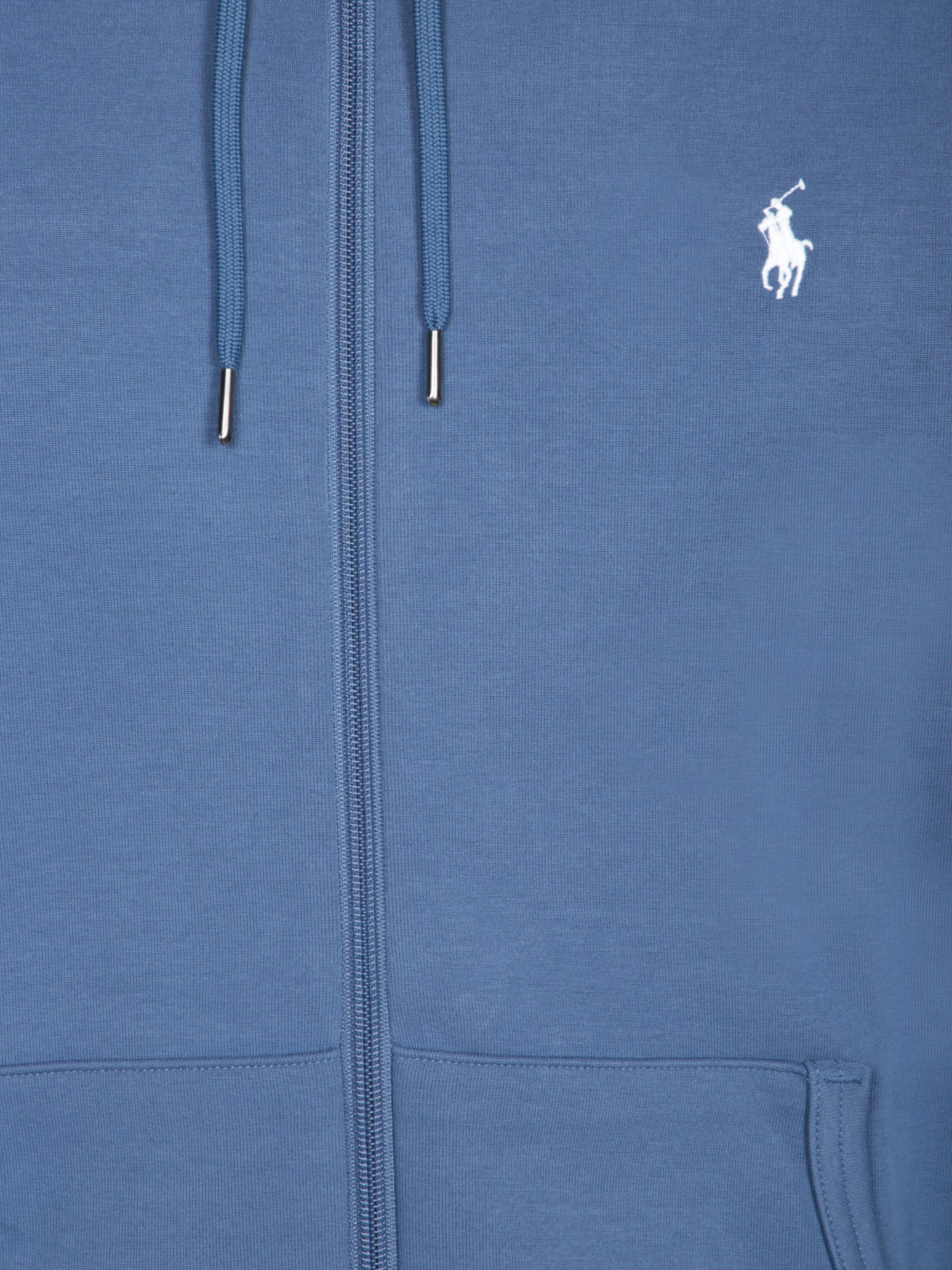 Adjustable hooded sweatshirt with front zip closure, kangaroo pockets.