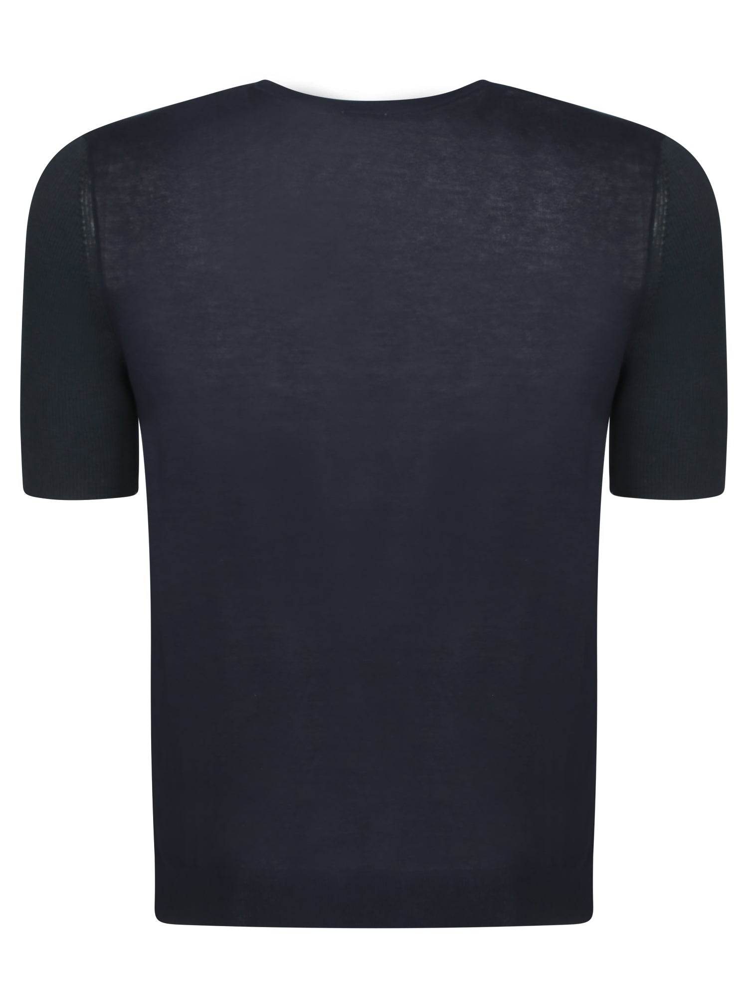 Knitted fabric t-shirt. Contrast detailing on the shoulders. Ribbed crew neck.