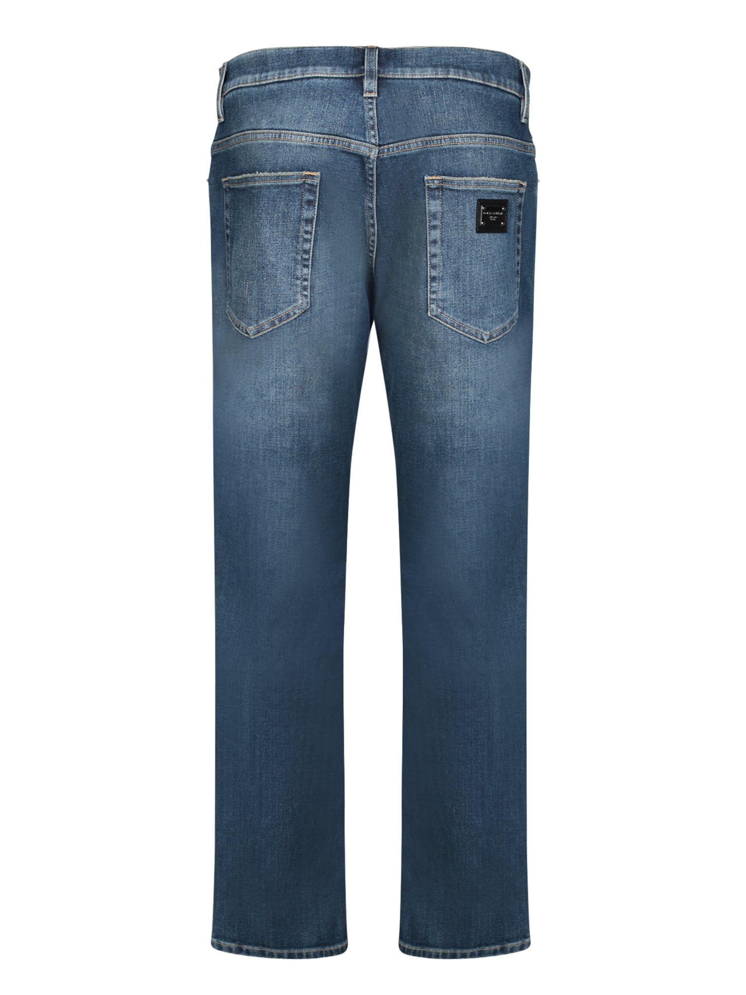 Explore comfort without sacrificing style with these Dolce & Gabbana loose fit jeans. Crafted in soft blue denim, they feature a vibrant washed shade and finely crafted details, perfect for a casual yet sophisticated look.
