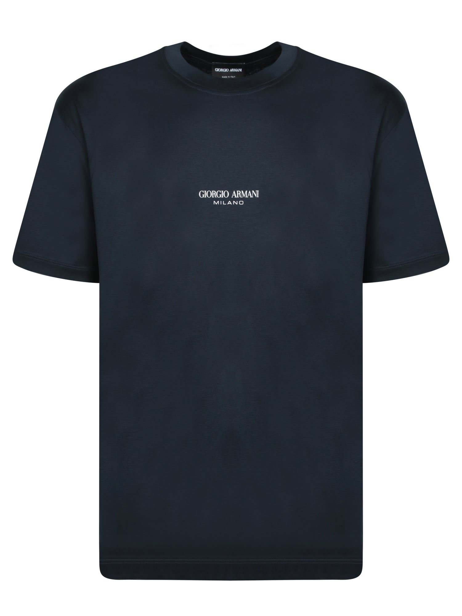 Short sleeve. Contrasting Giorgio Armani Milano front logo. Round neckline.