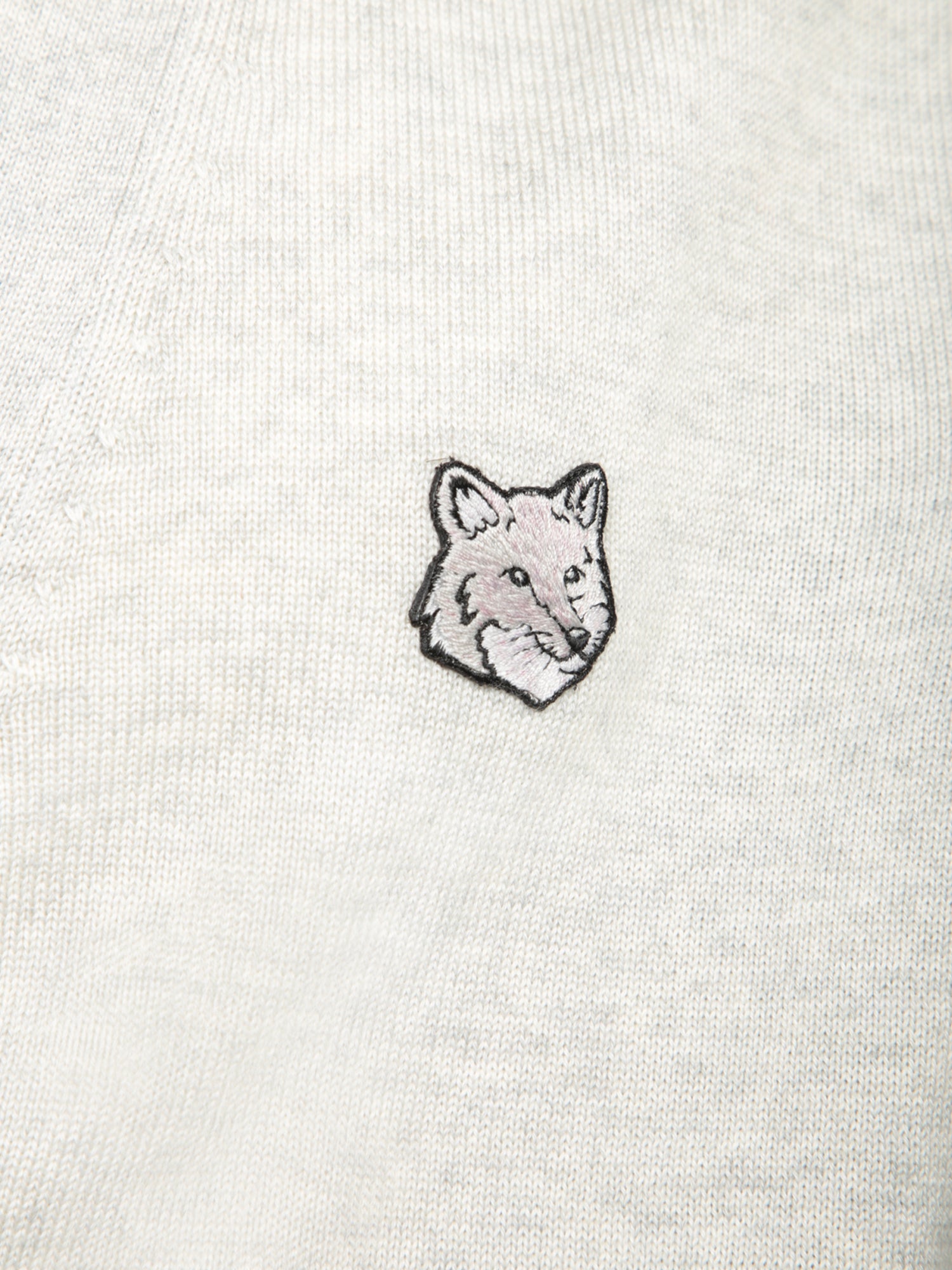 Crafted from fine wool, this grey cardigan by Maison Kitsune' features a minimalist design enhanced with the iconic fox head embroidery. Perfect for a casual yet polished look.