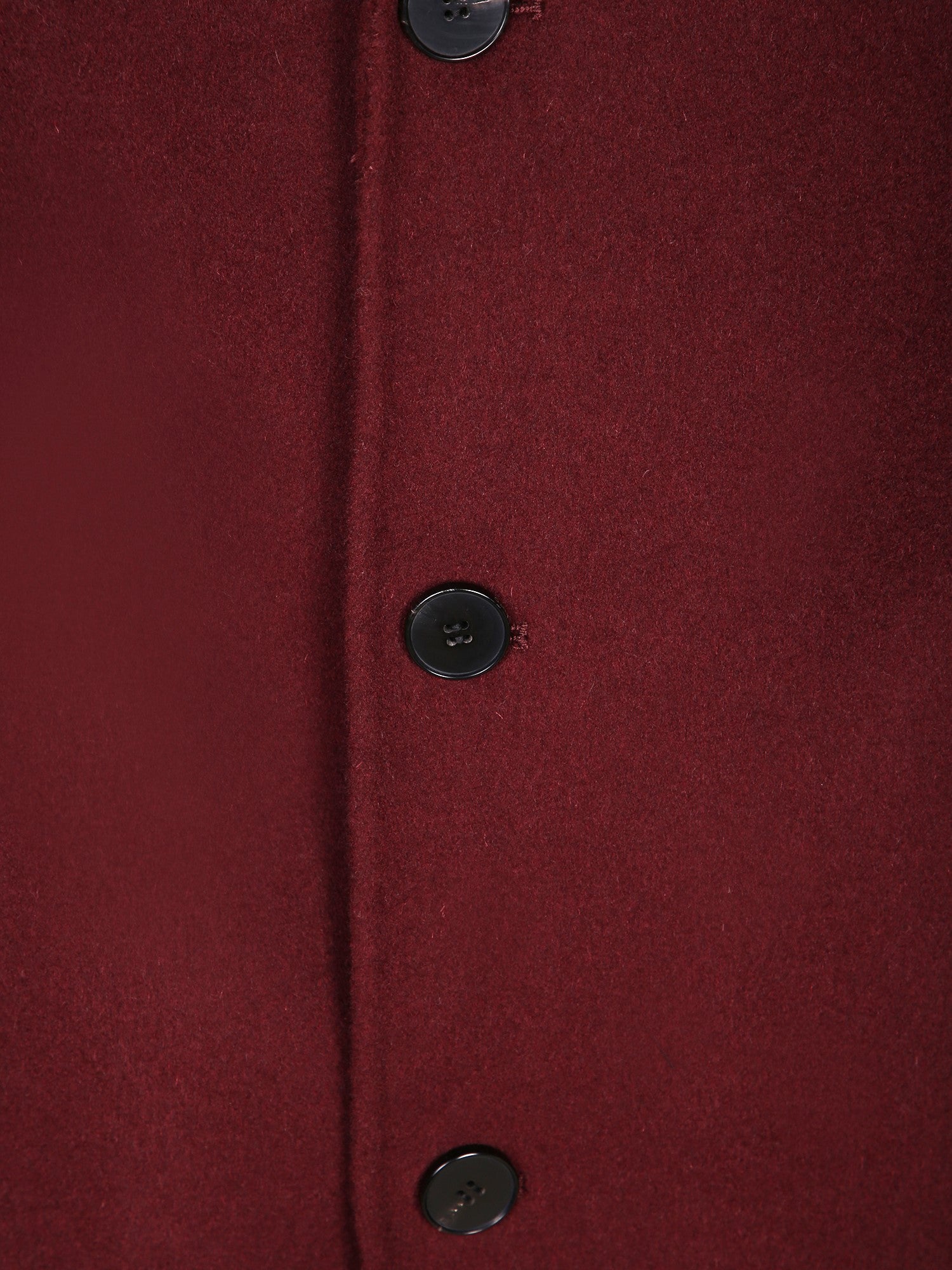Classic cut coat made from premium fabric. Features a button front closure and a notched collar.