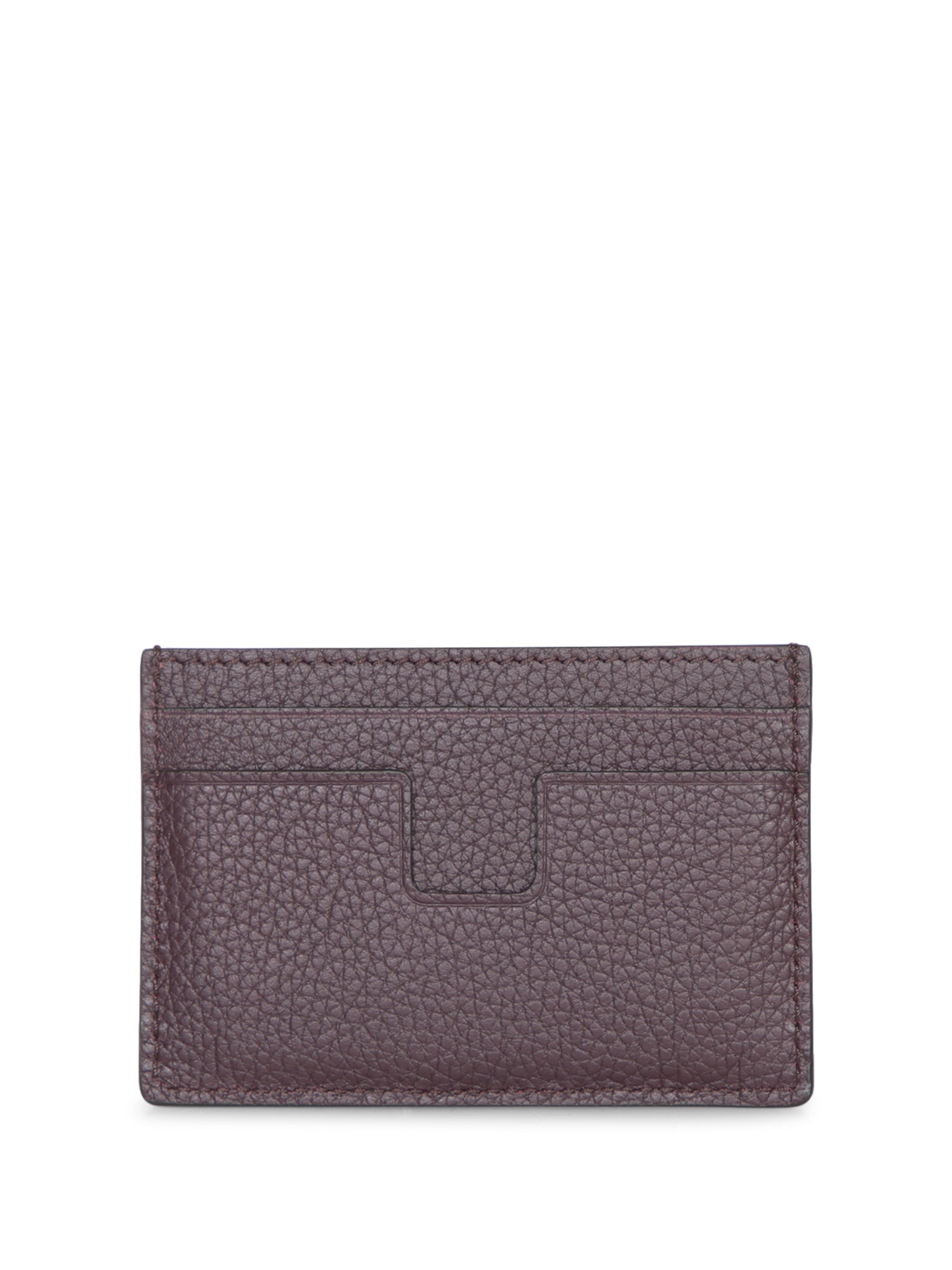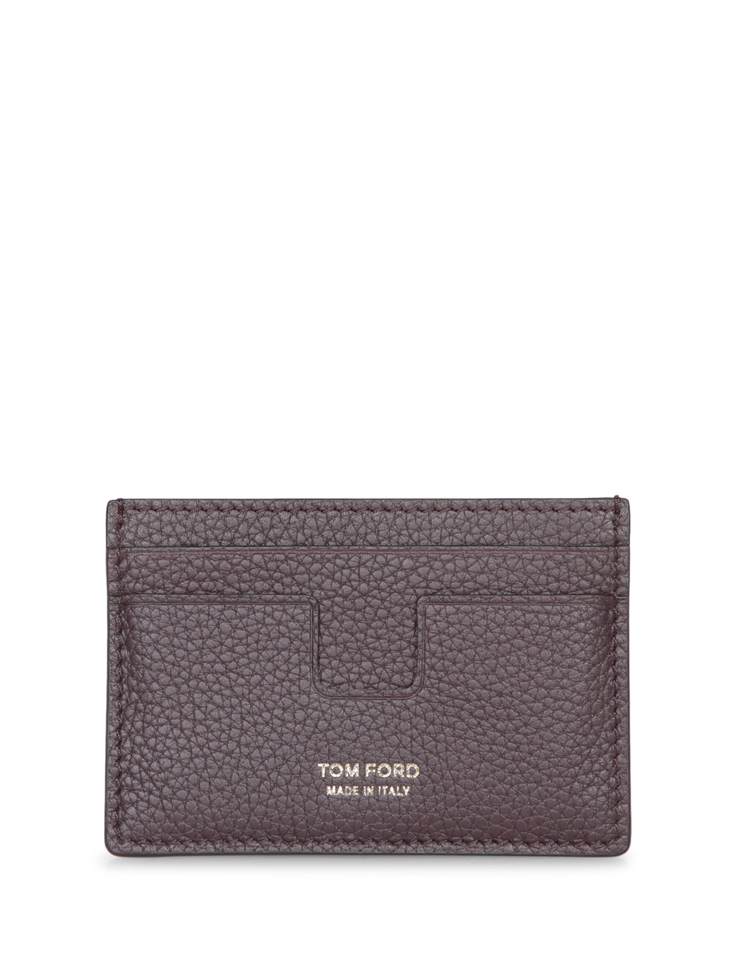 Grained leather card holder. Gold-tone TOM FORD logo. Four card slots.
