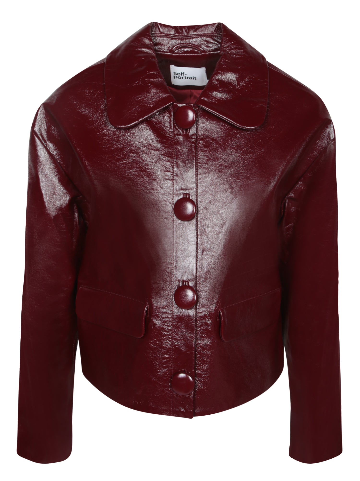 Smooth leather jacket with button closure. Classic collar and flap pockets.