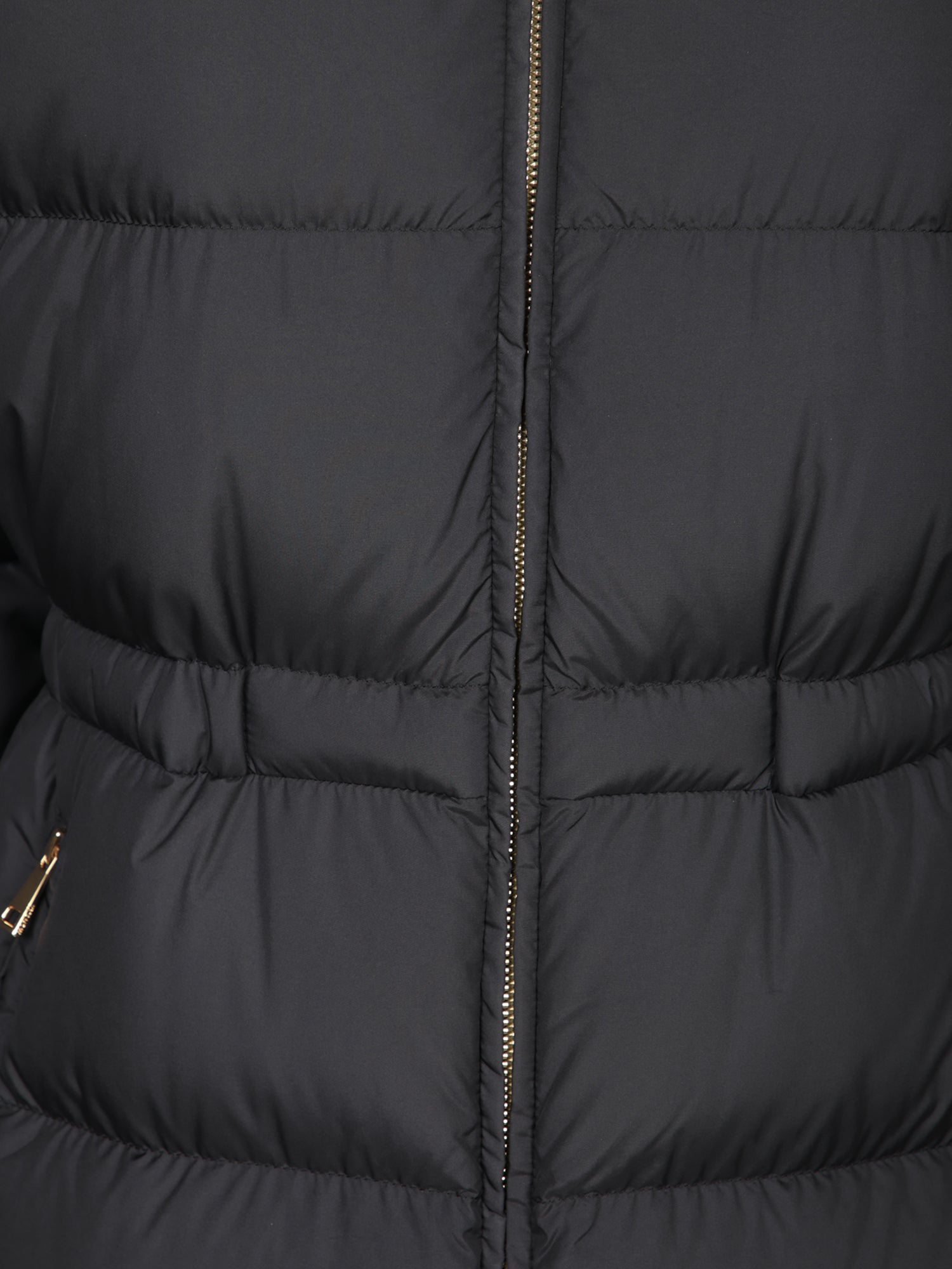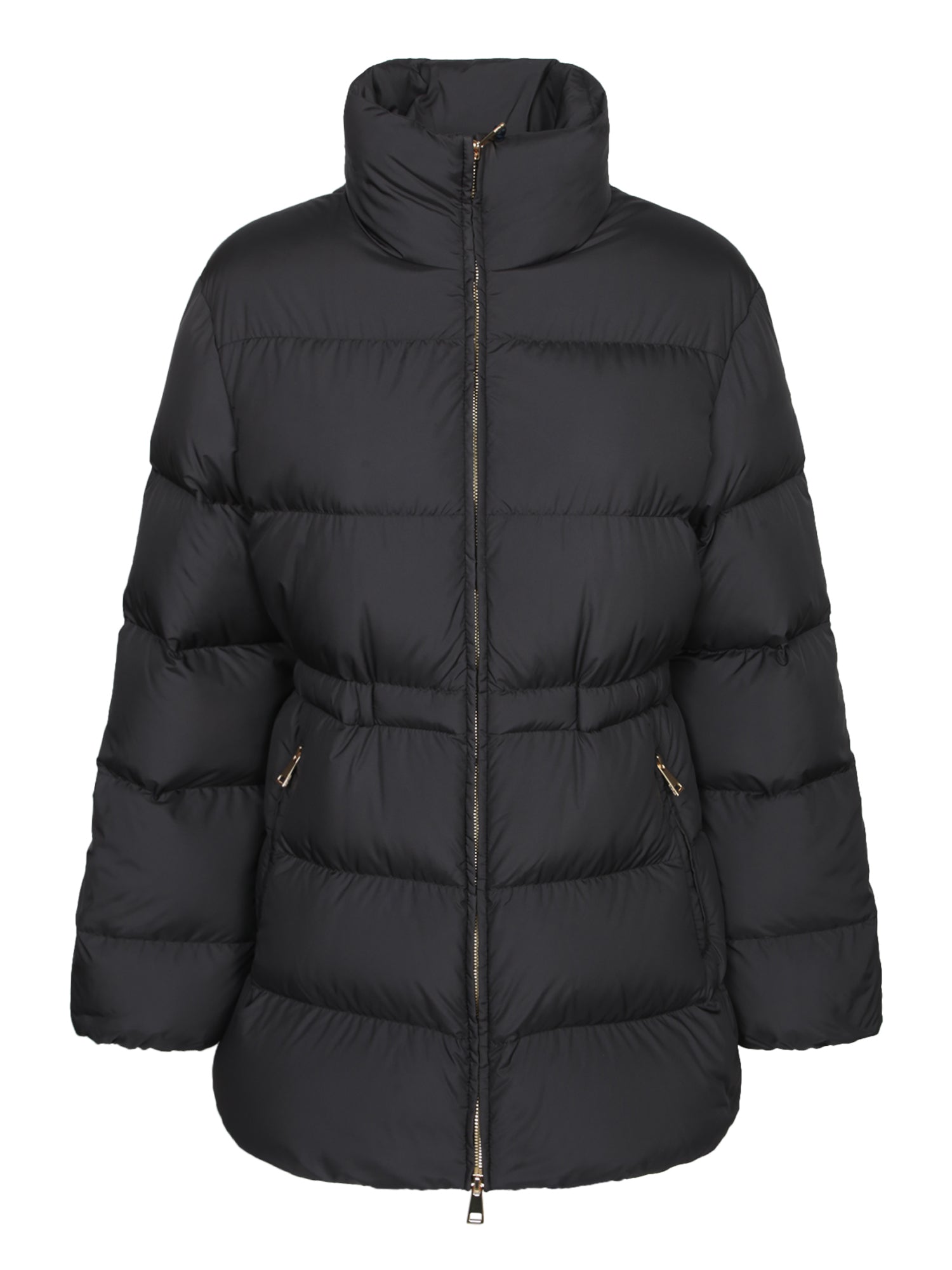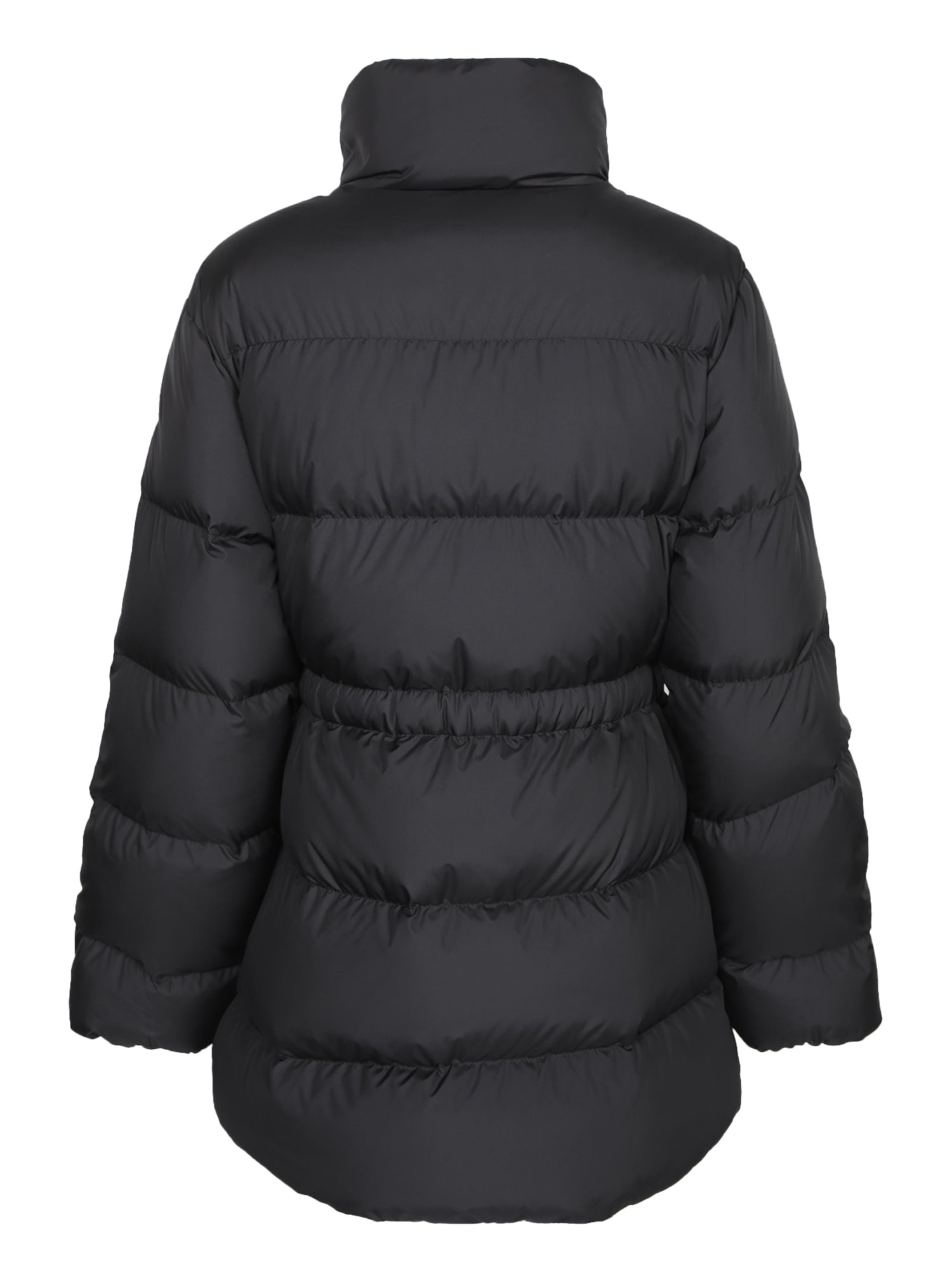 Padded jacket with high neck and front zip closure. Side pockets with zippers.