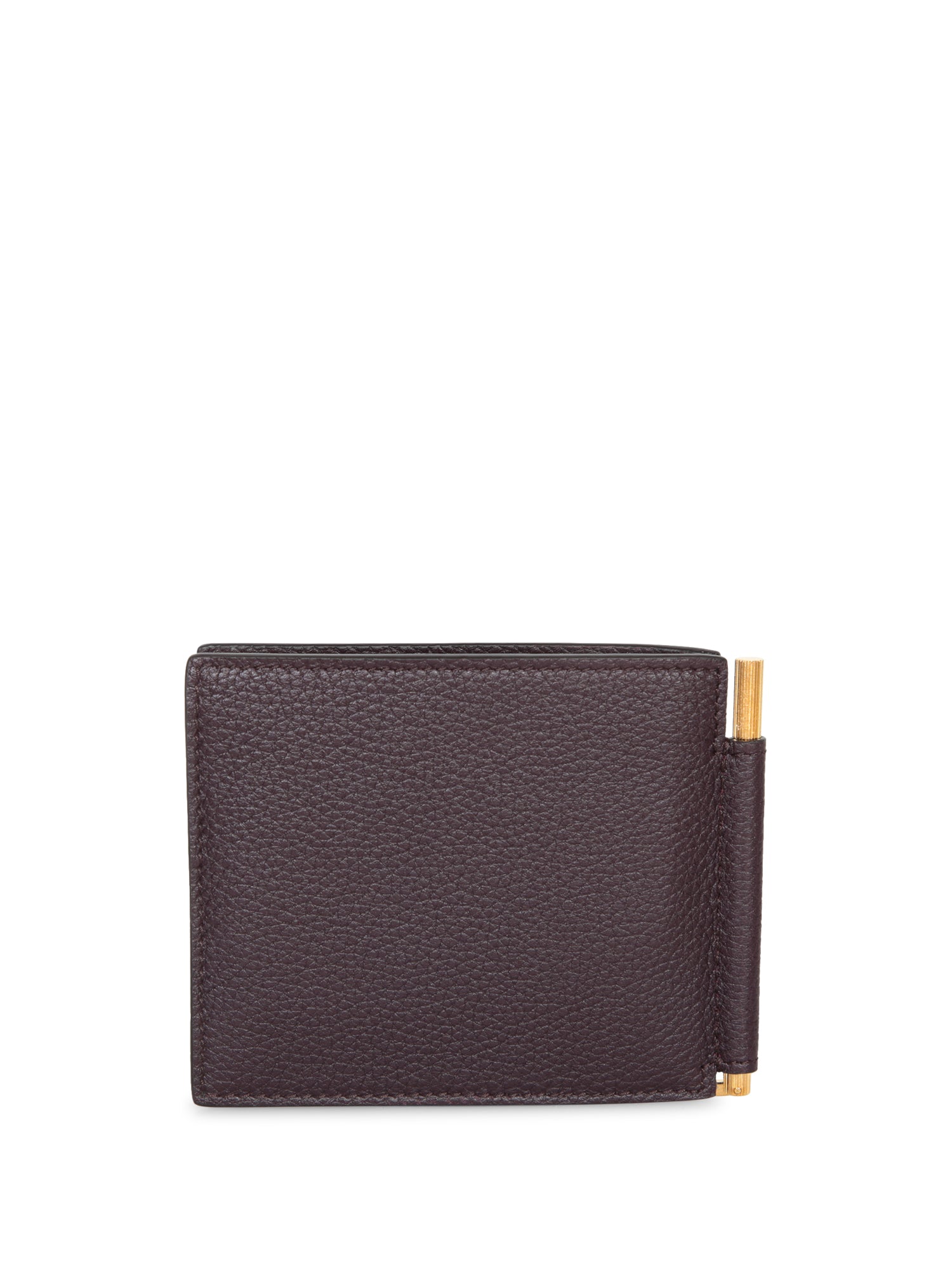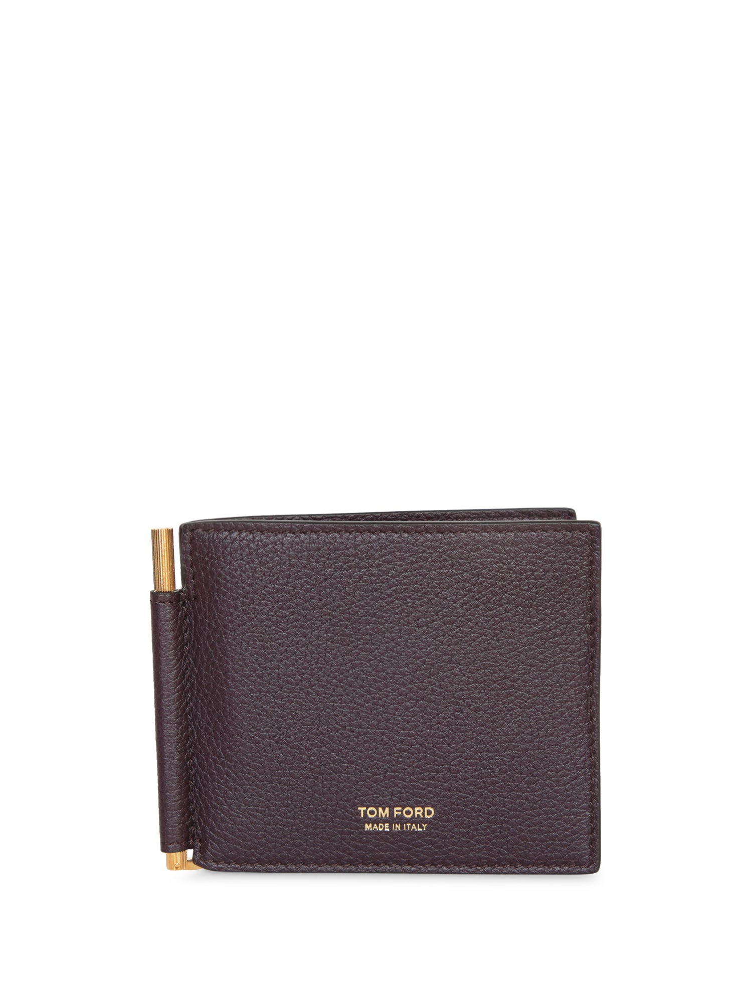 Crafted from premium leather. Gold-tone metal money clip. Compact design.