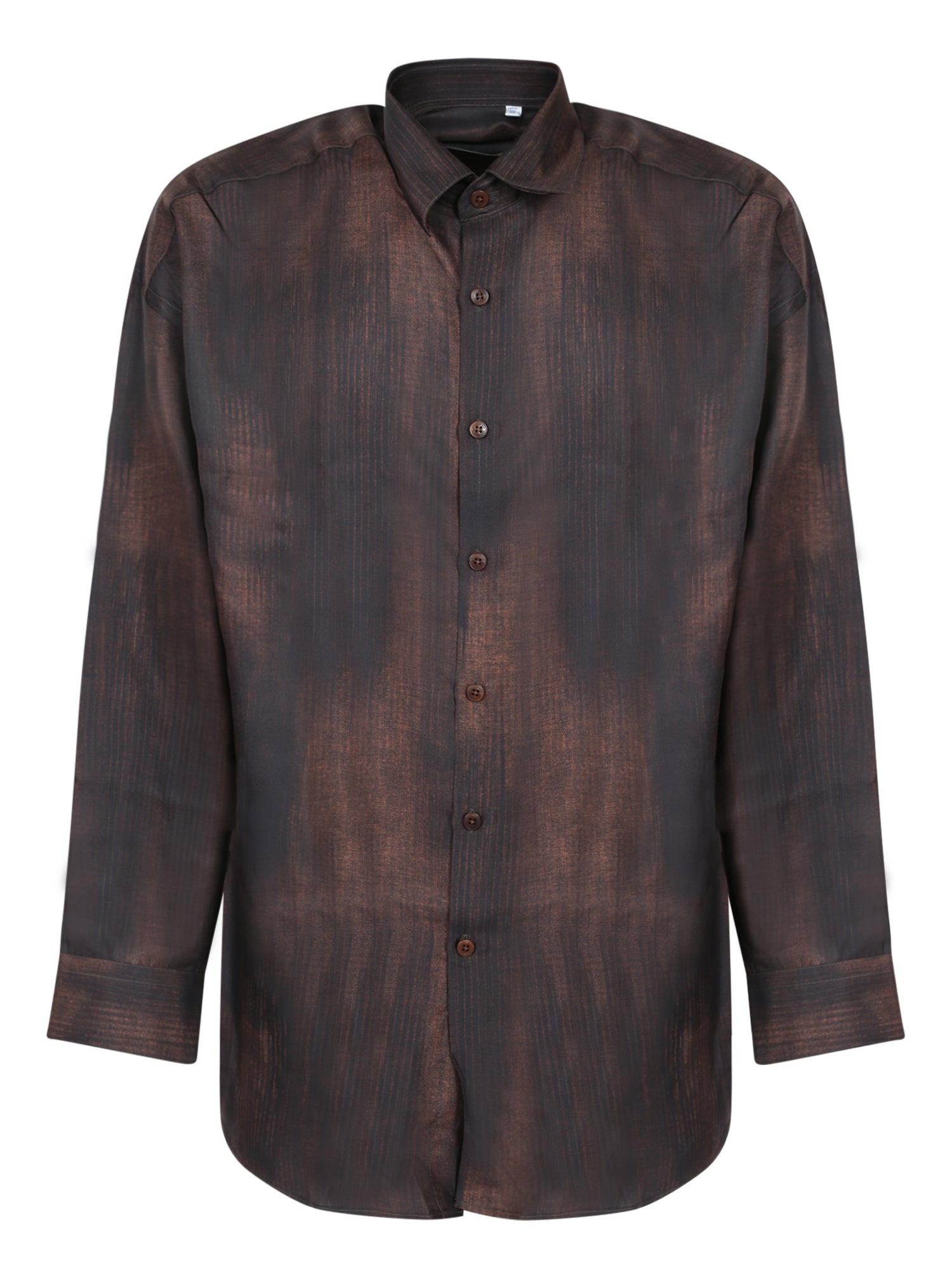 Oversized style shirt. Made of fine silk with gradient print. Front button closure.