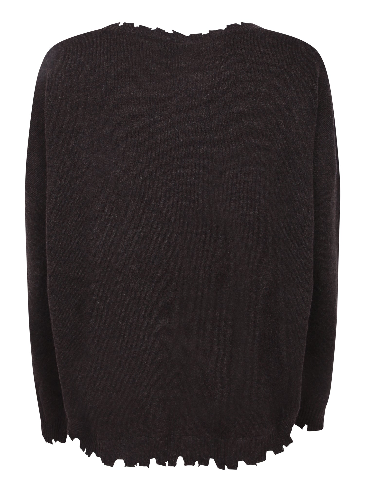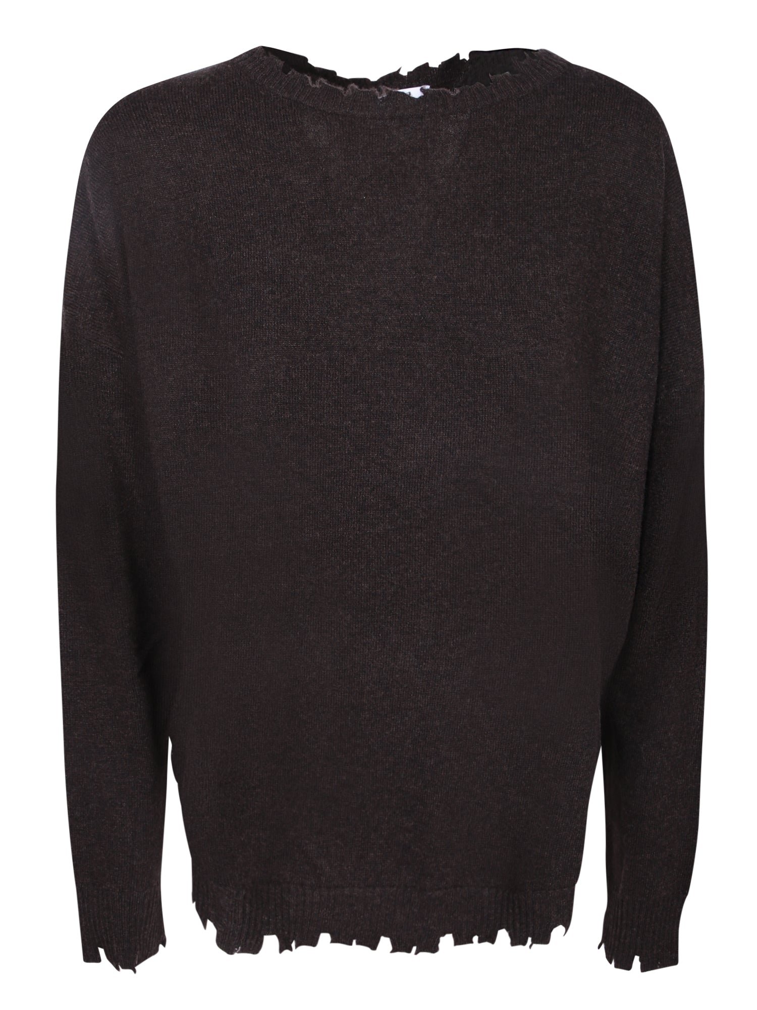 Crew neck sweater. Frayed edges at hems. Minimalist design.