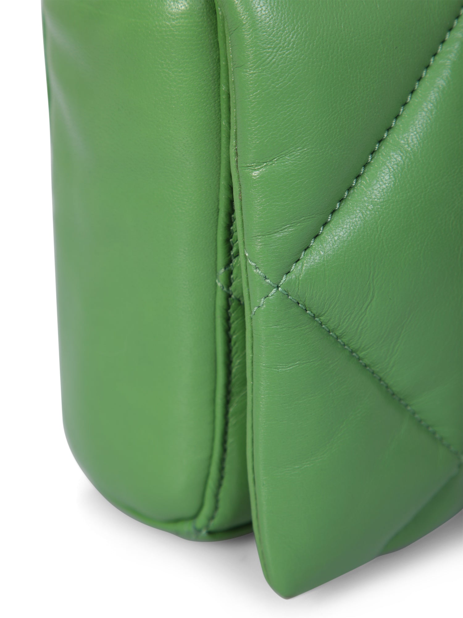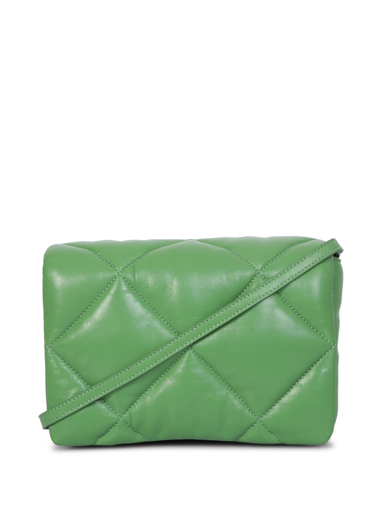 Foldover top. Magnetic fastening. Main compartment. Internal zip fastening pocket. Detachable shoulder strap. Chain link shoulder strap. Diamond quilting. Silver tone hardware. Color: green Depth: 9cm Height: 17cm Width: 24cm