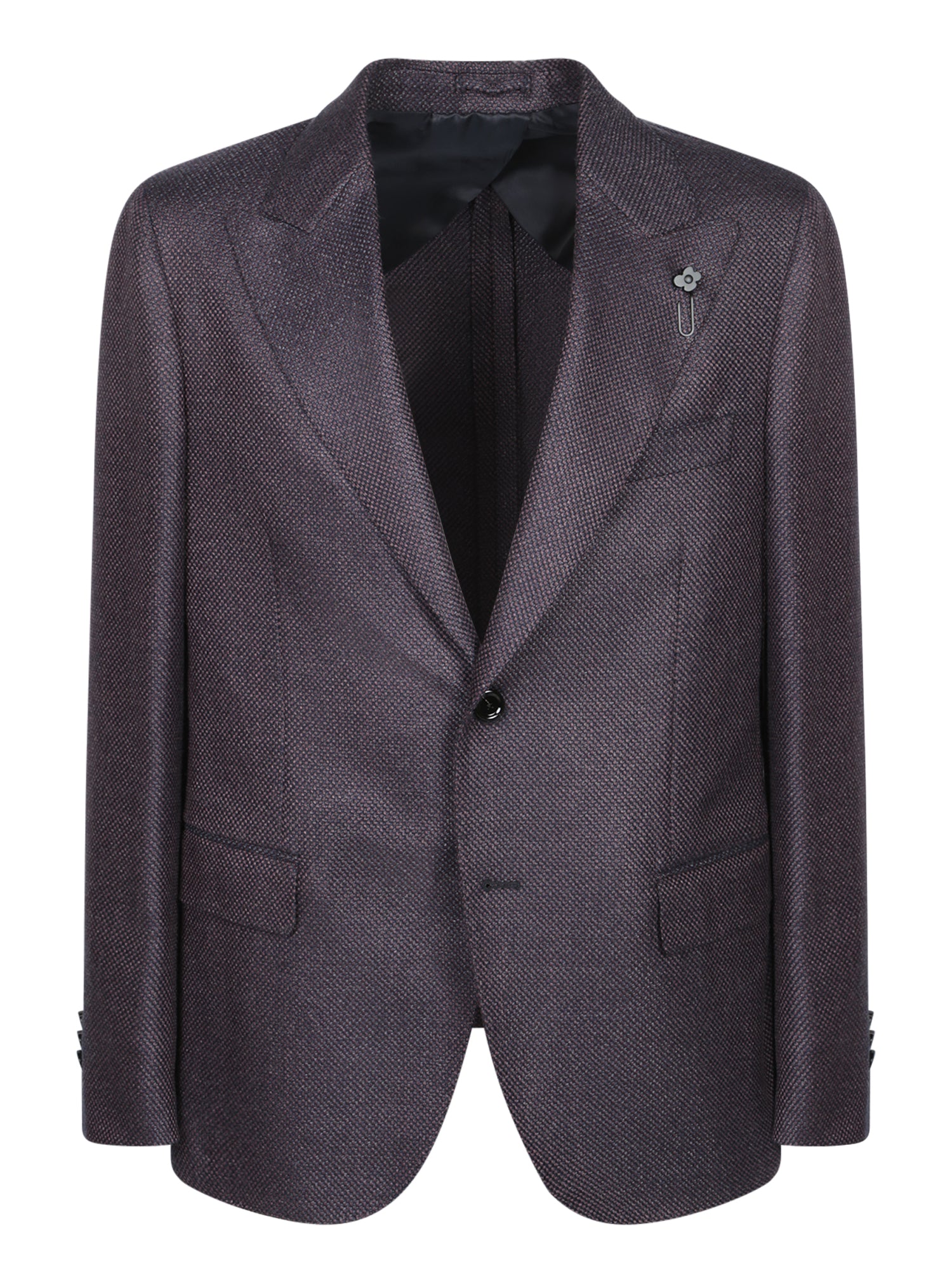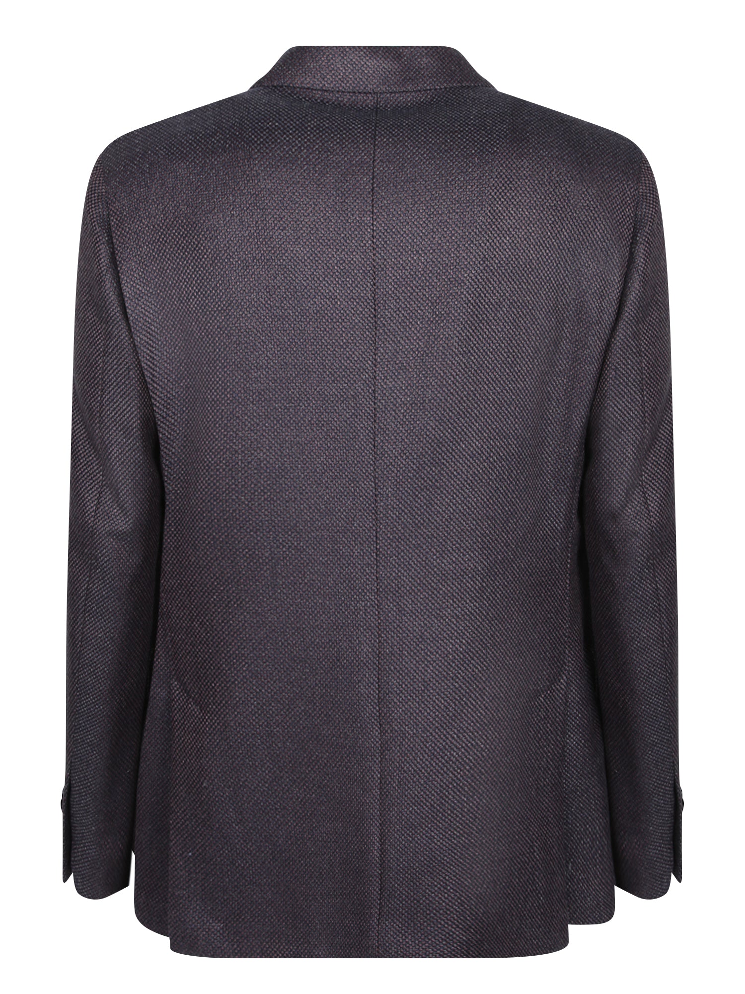 Tailored wool and cashmere jacket. Single button closure, classic lapels, and welt pockets.