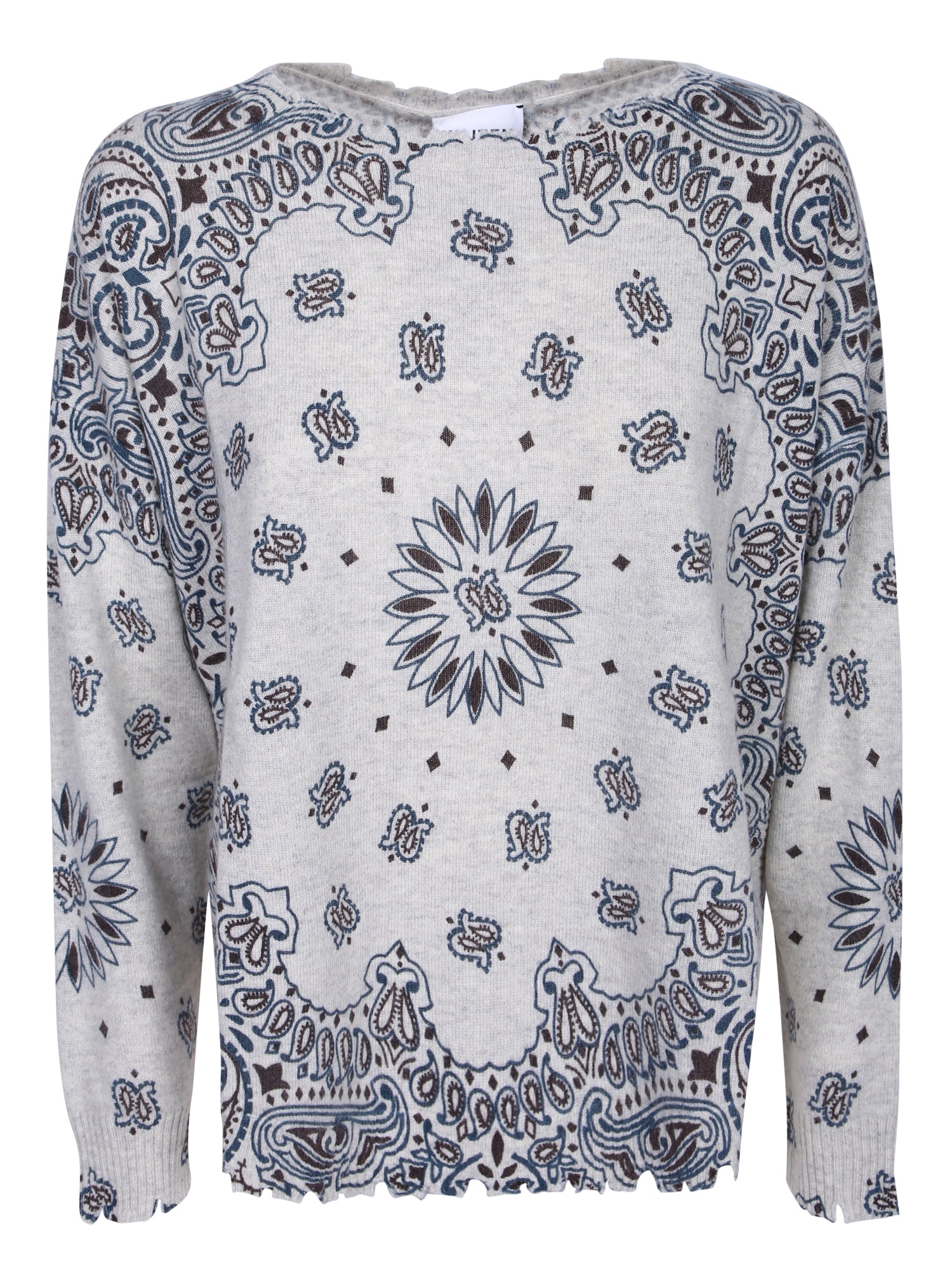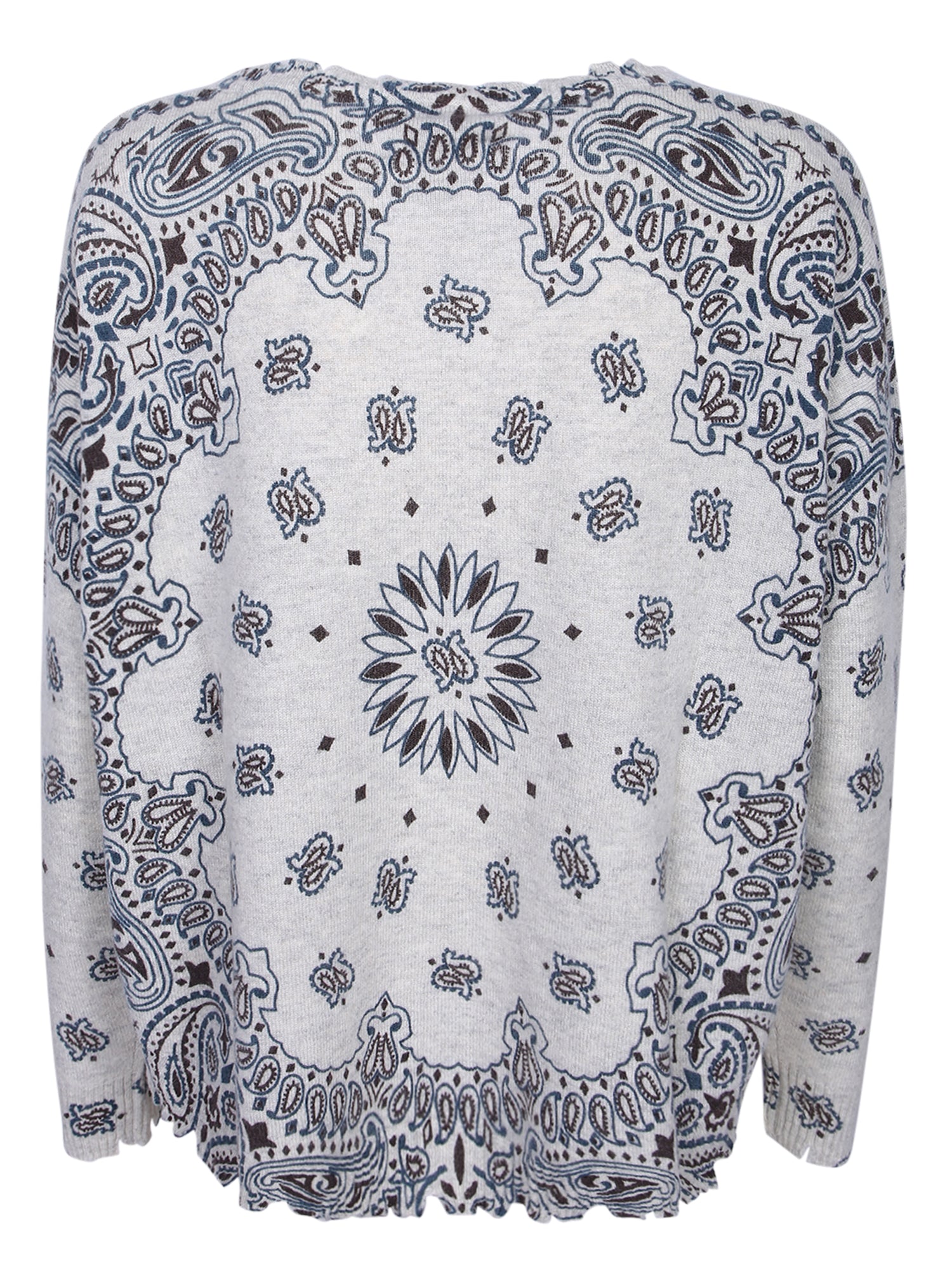 Cashmere sweater. Contrasting jacquard pattern. Ribbed trim.