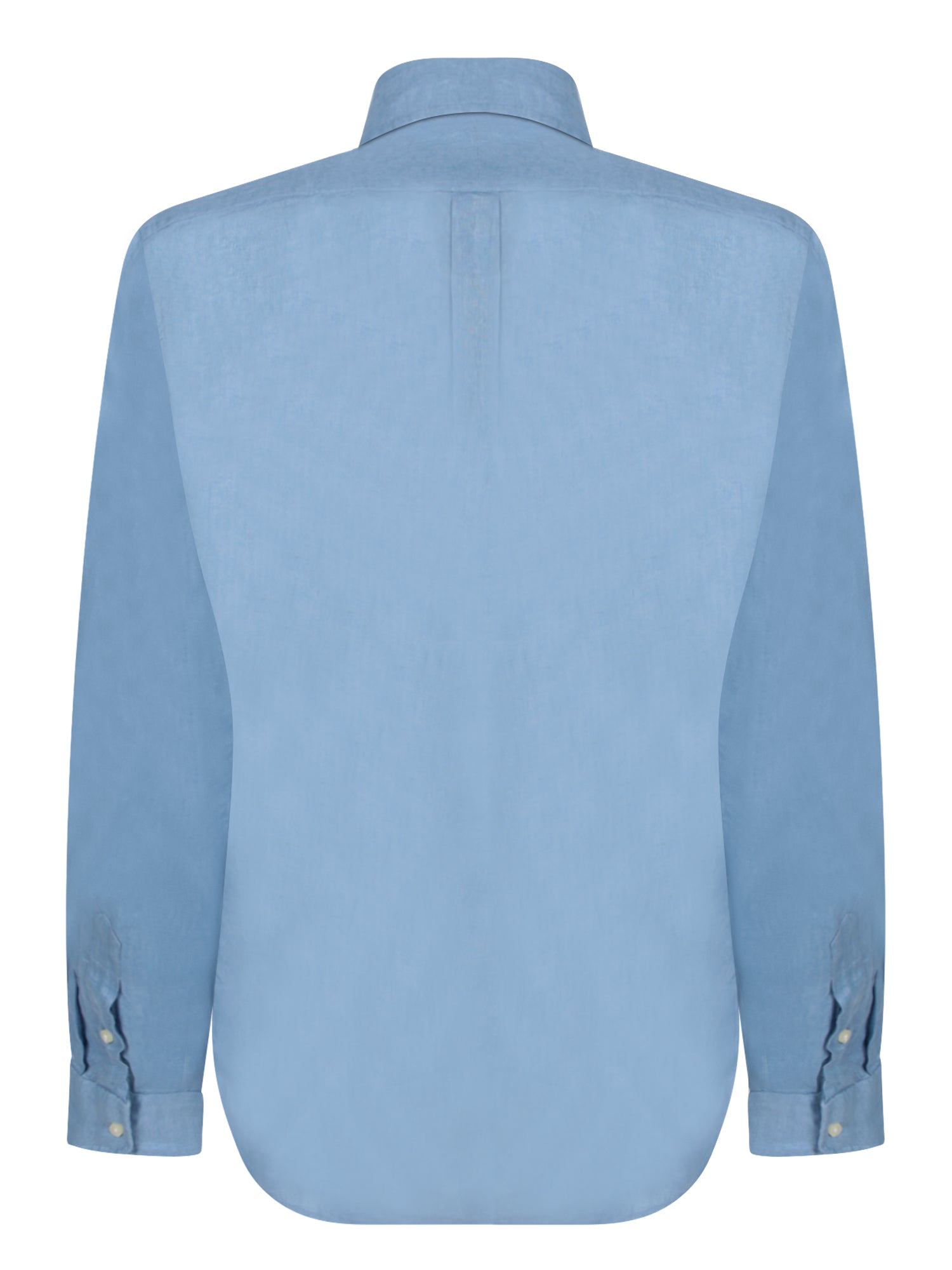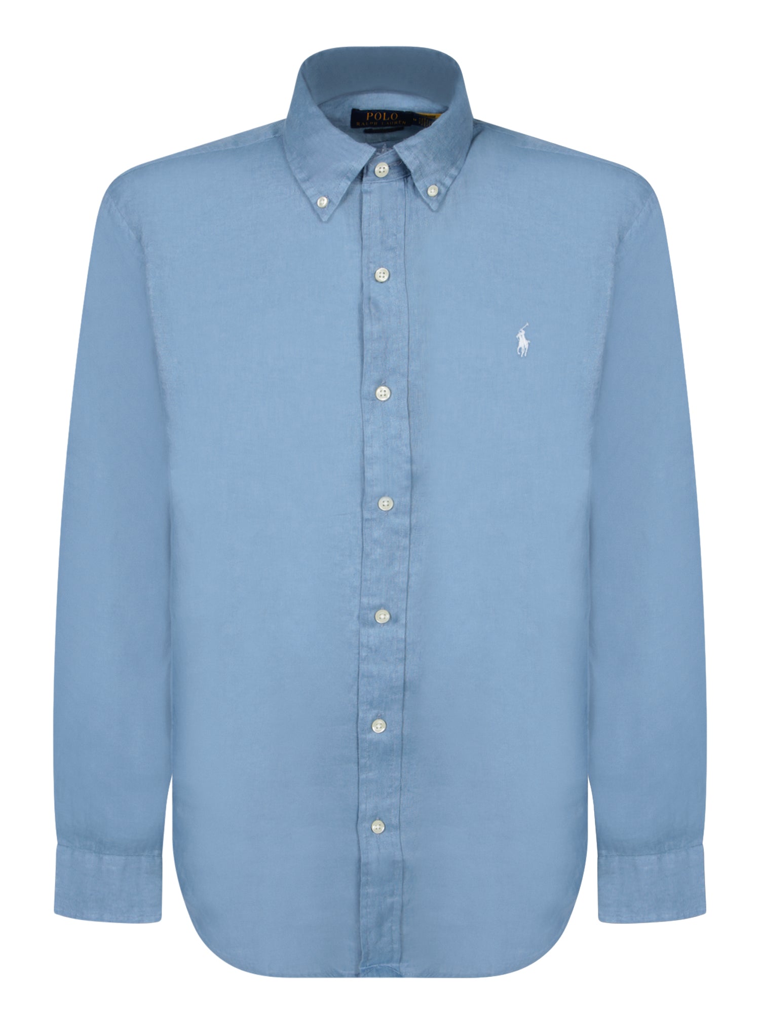 Long sleeve linen shirt. Button-down collar. Embroidered logo on the chest.