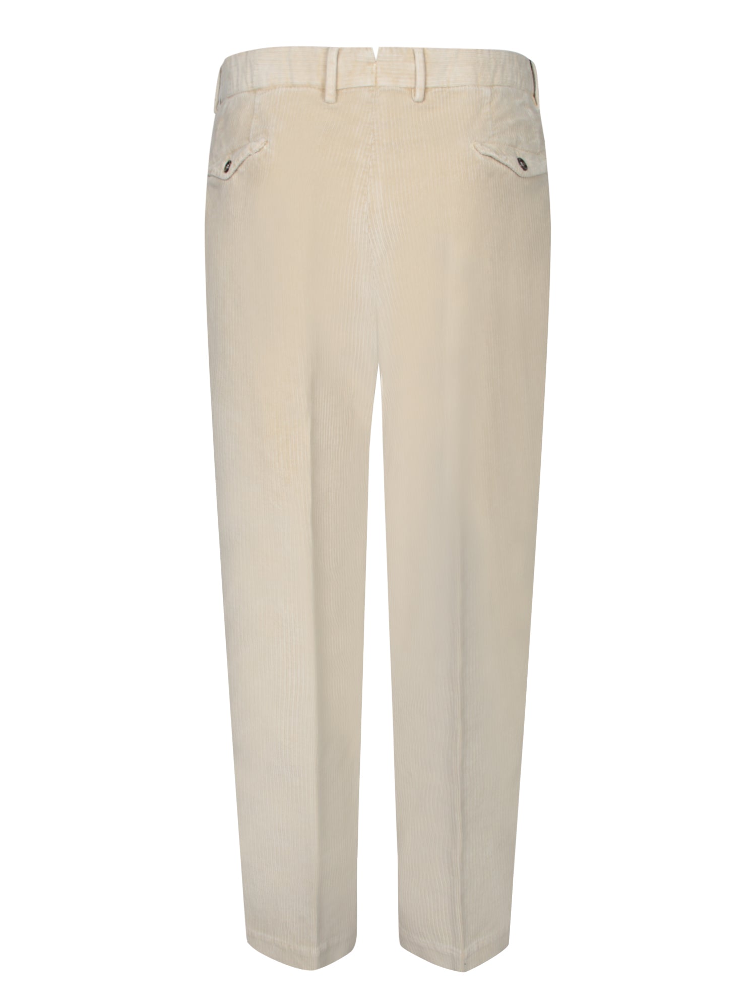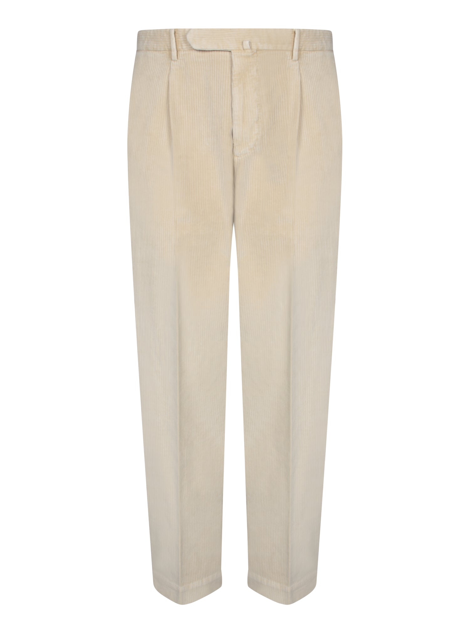 Corduroy trousers with a straight cut. Side and back pockets. Zip and button closure.