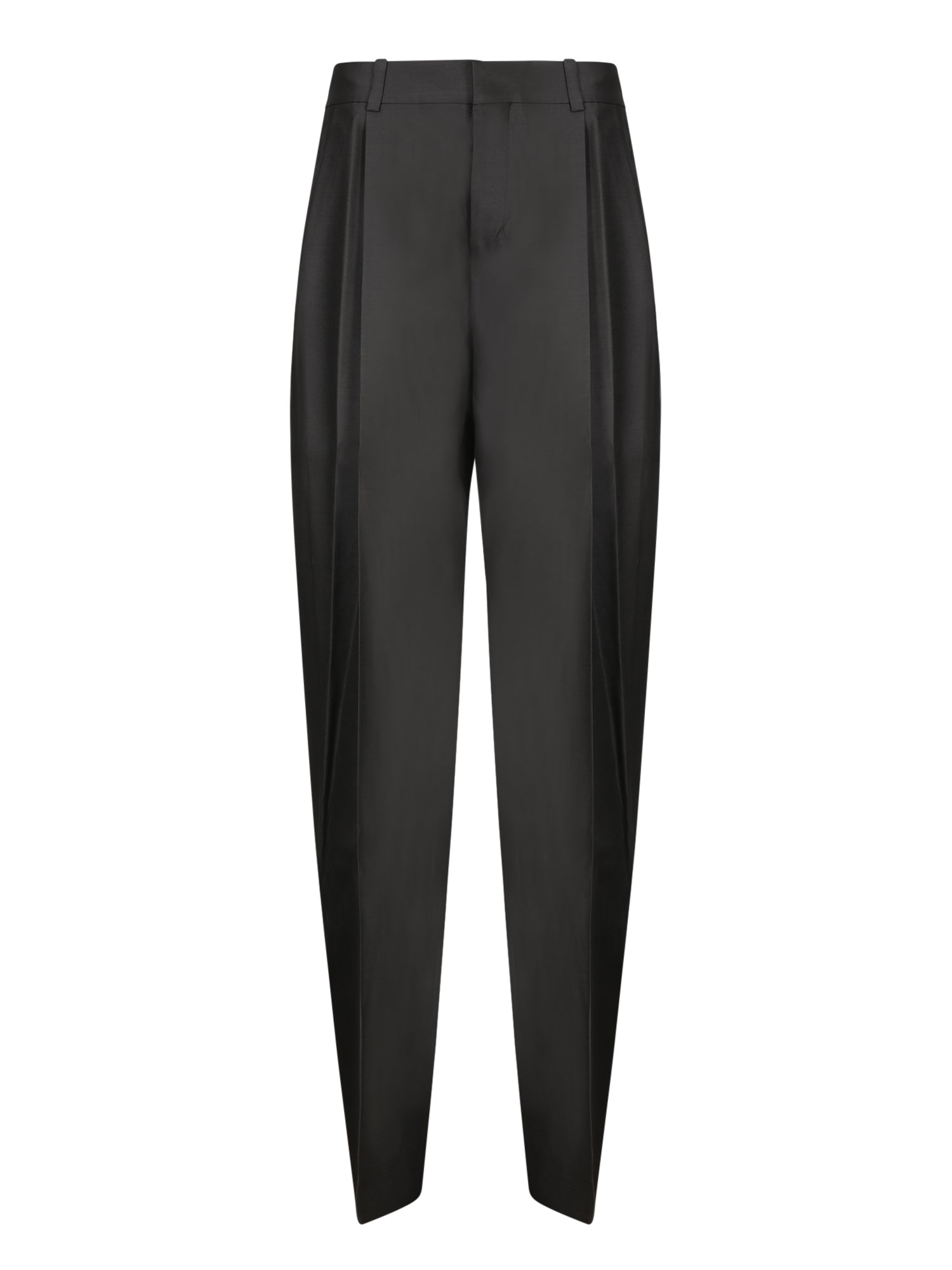 Tailored cut. Cotton and wool blend fabric. High waist.