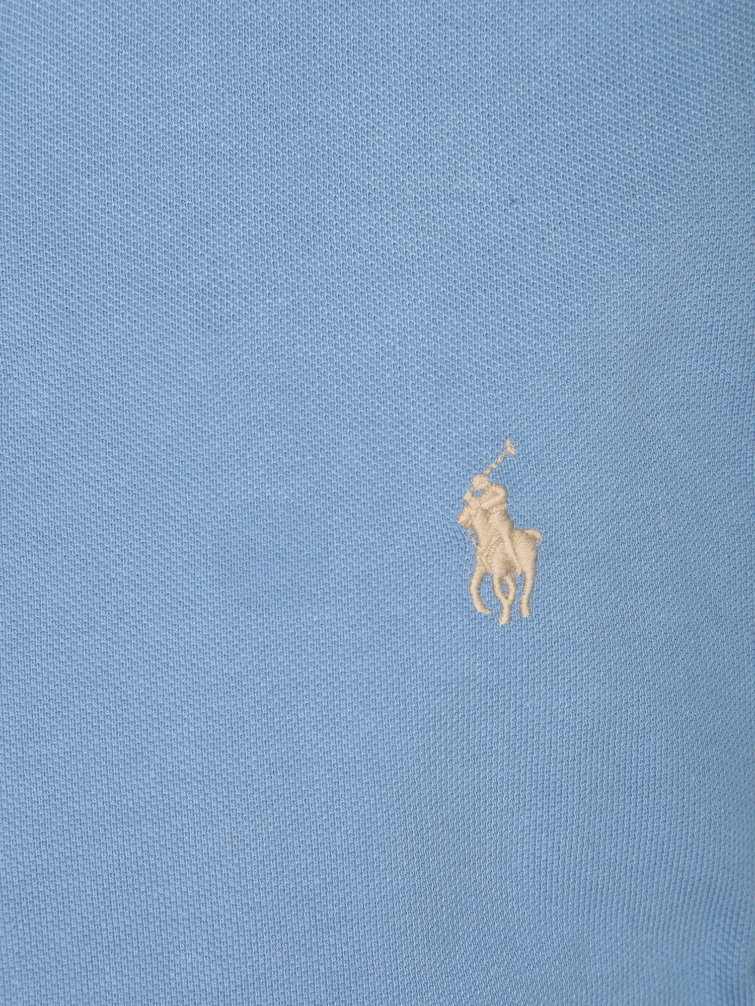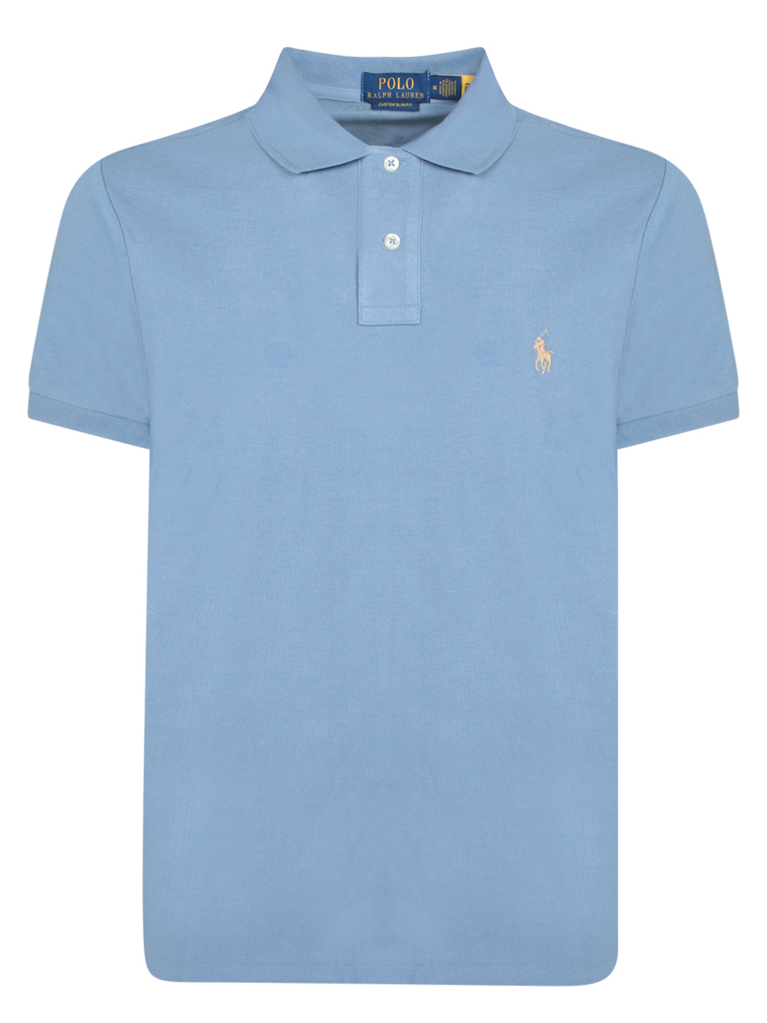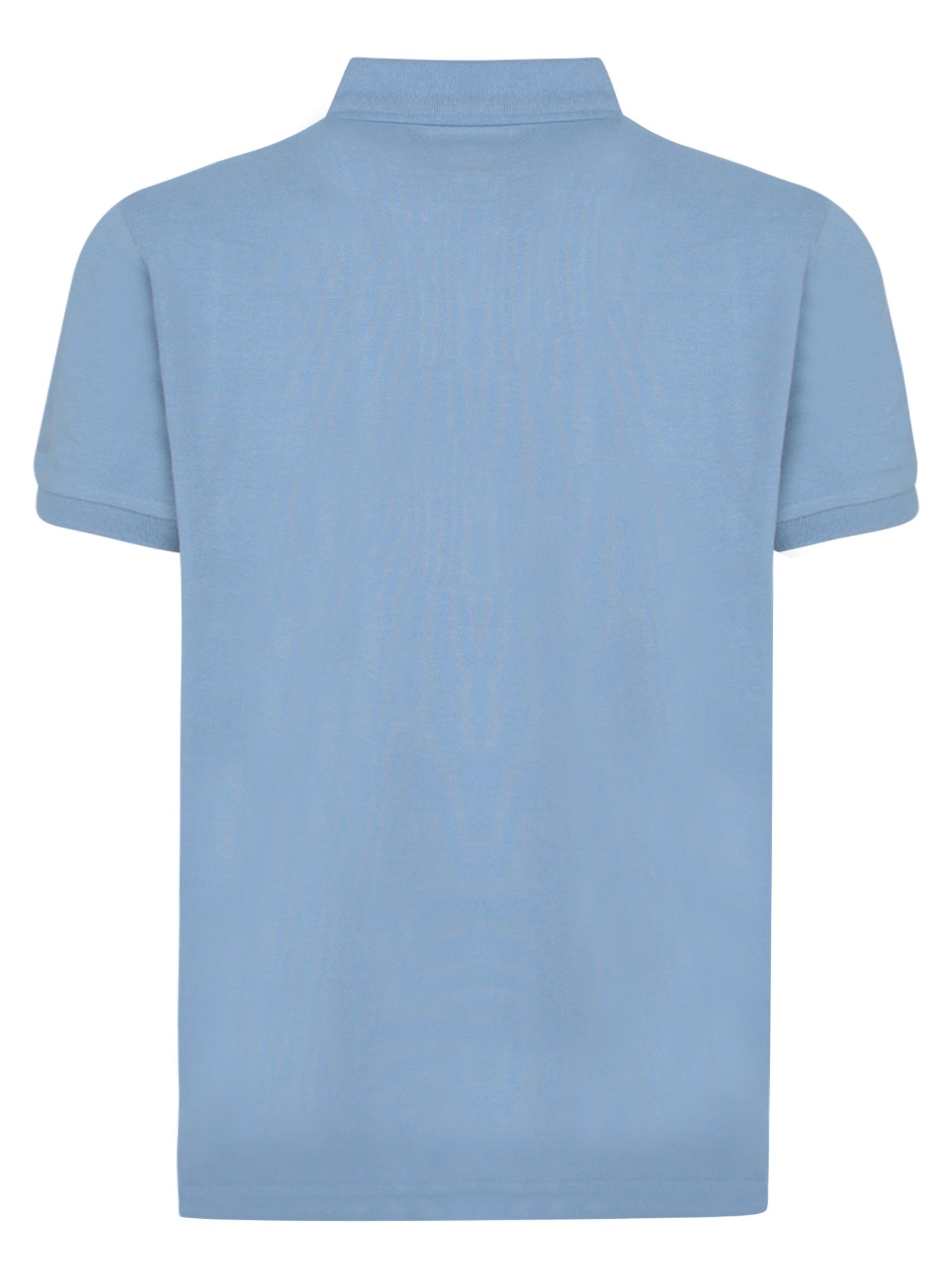 Short sleeve polo. Blue color. Two-button placket. Embroidered logo on the left chest.