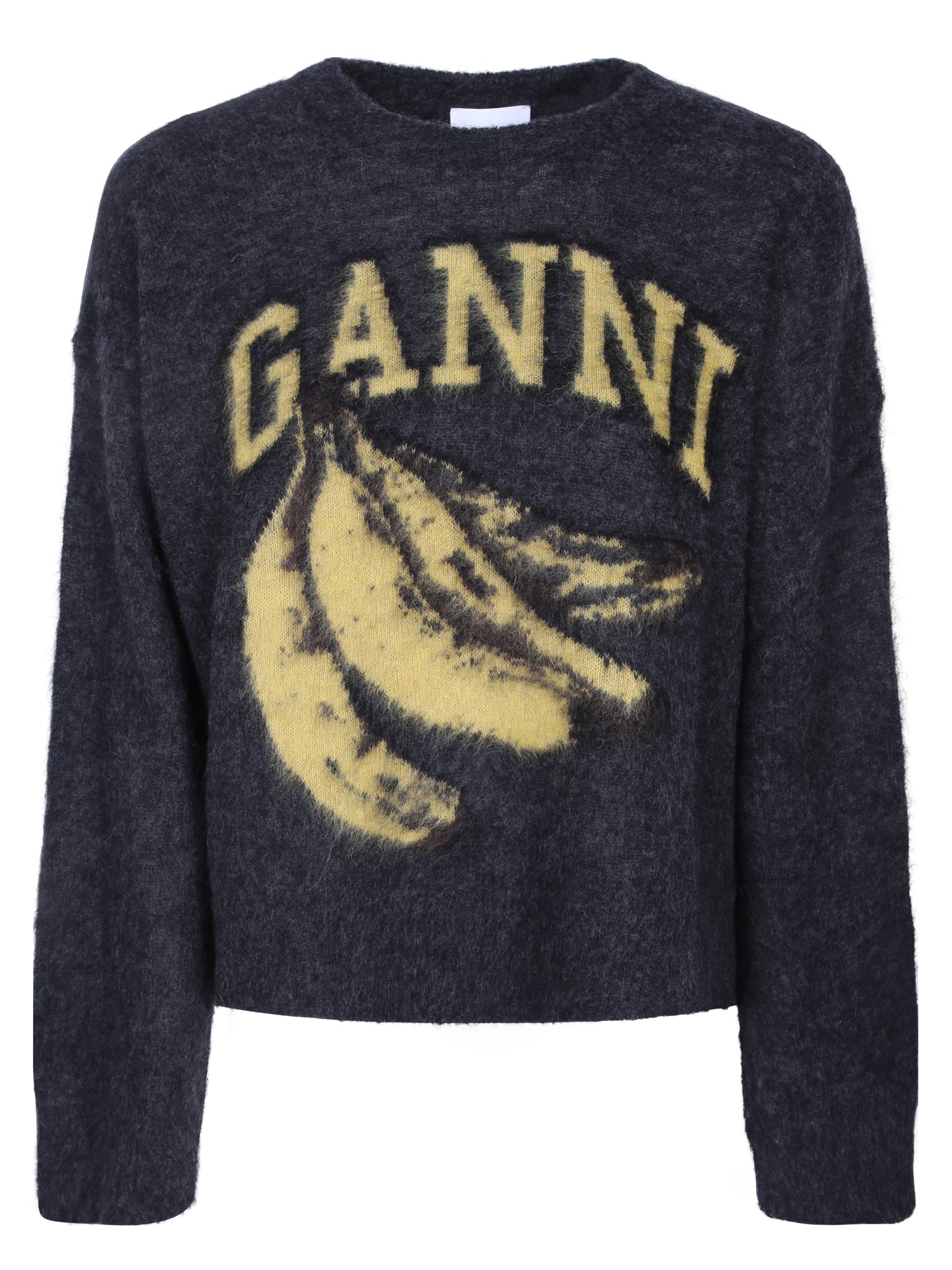 Long sleeve sweater. Contrasting yellow banana logo and motif. Crew neck.