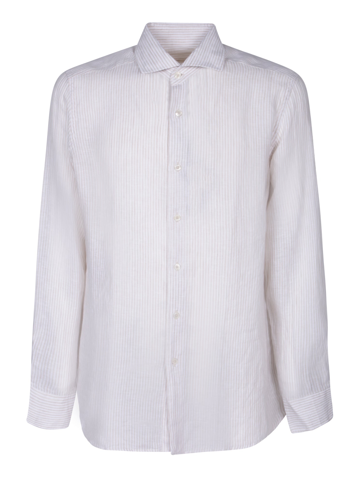 Ideal for a sophisticated summer look, this Dell’Oglio shirt features a beige and white thin striped design. The premium linen fabric ensures comfort and breathability, while adjustable cuffs provide a tailored fit.