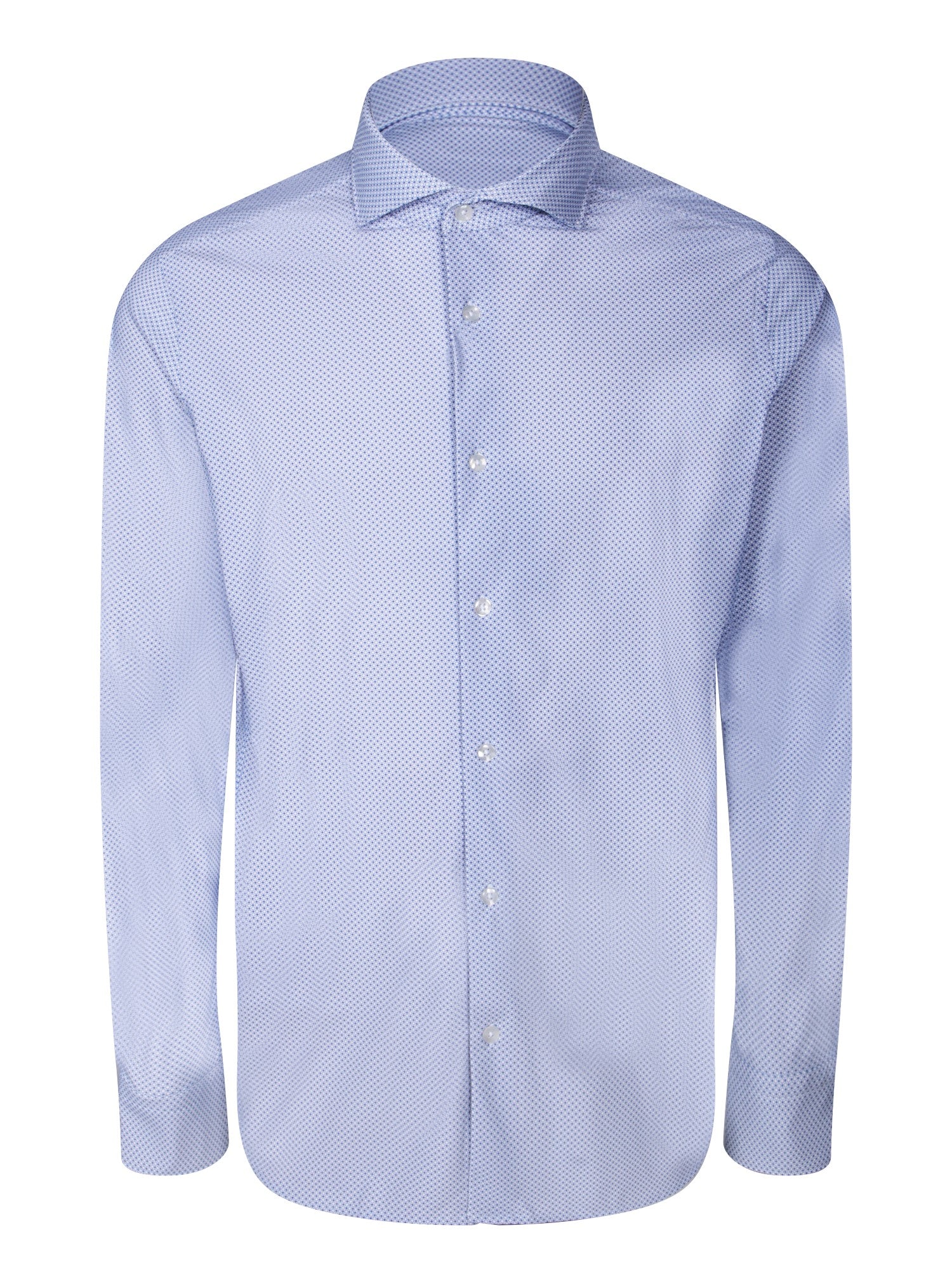 Dell'Oglio Geometric White and Blue French Collar Shirt
