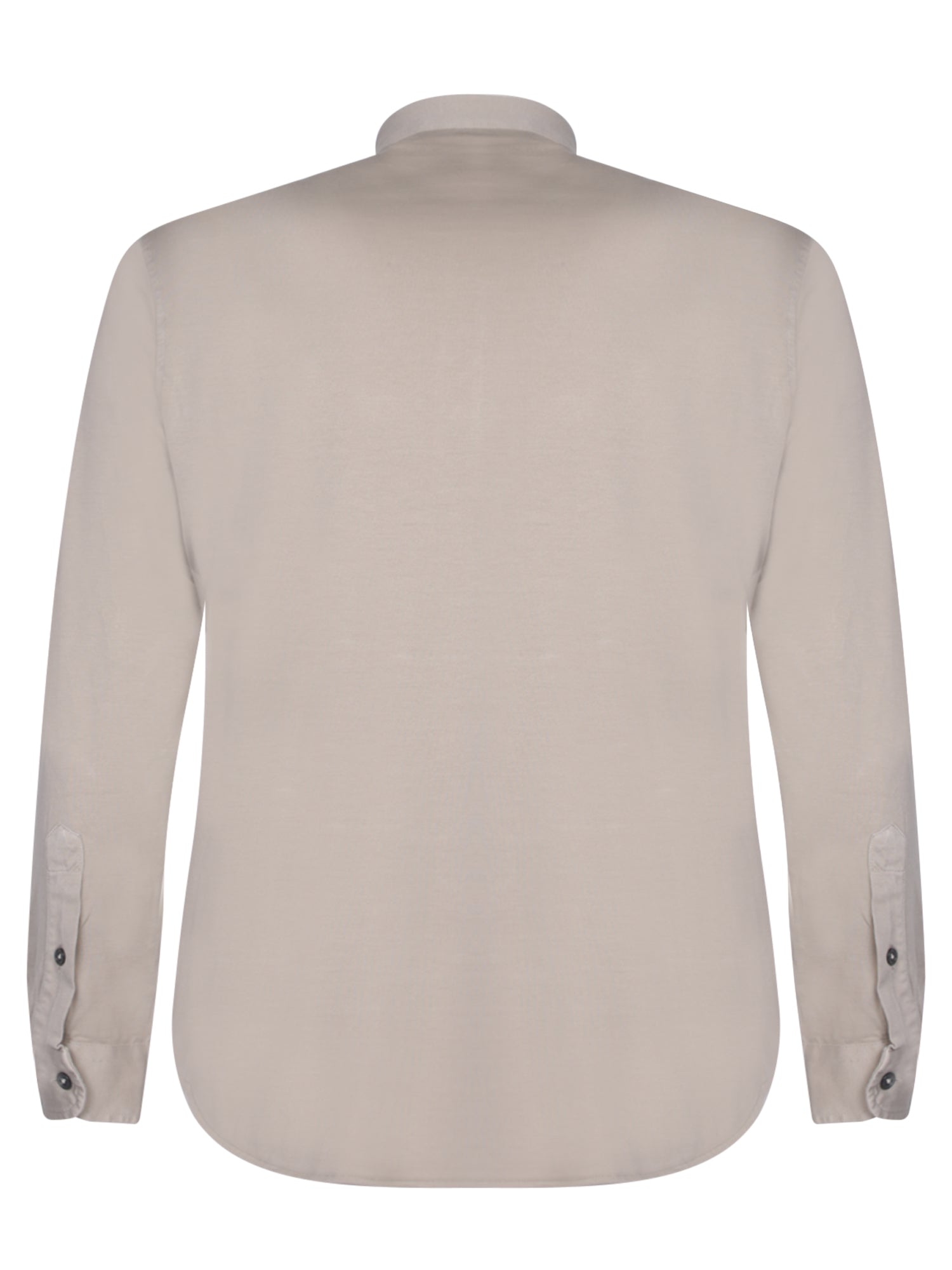 This elegant mastice-colored jersey shirt features a modern Korean collar and a clean silhouette, perfect for a stylish yet comfortable look.