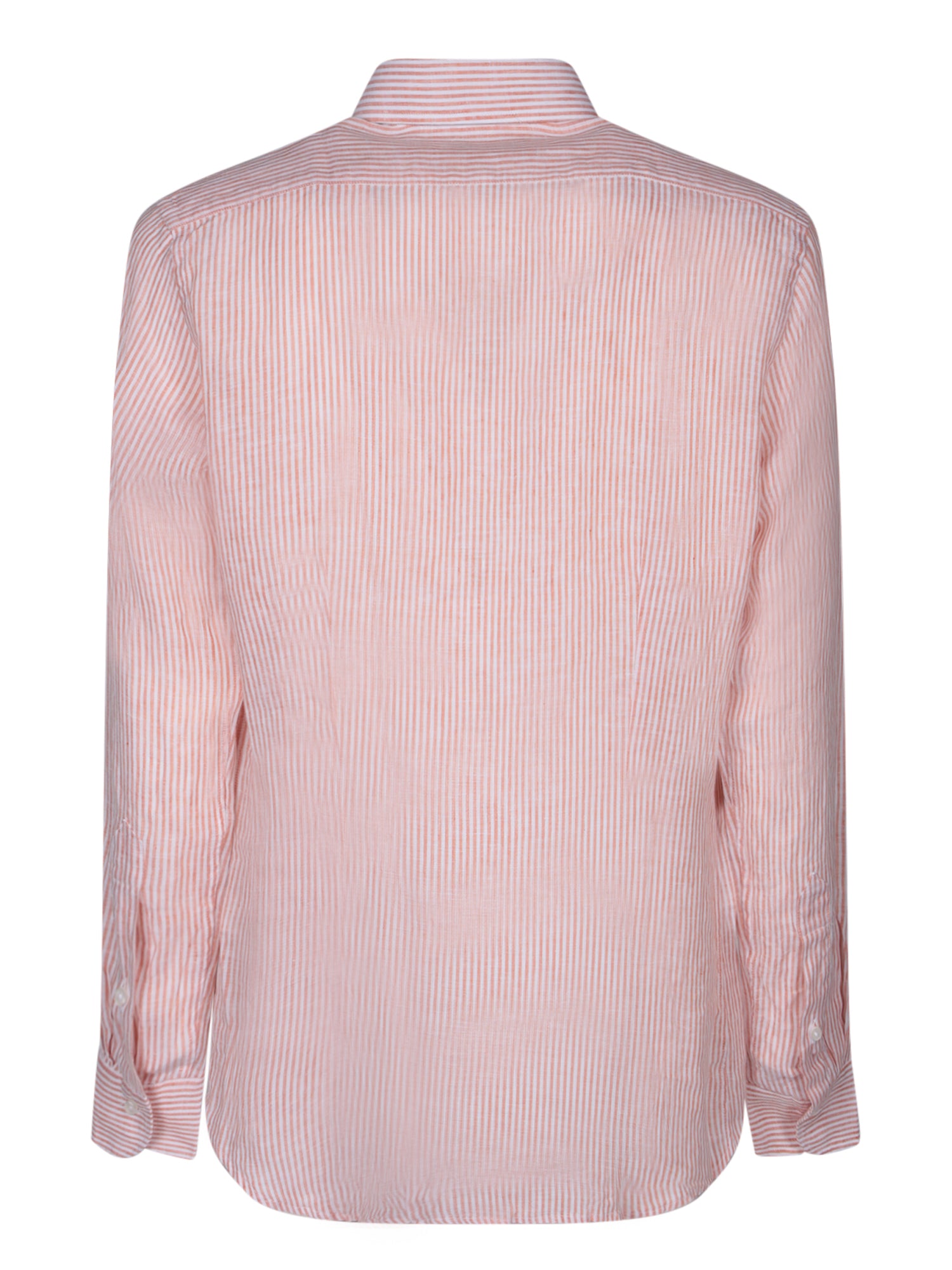 DELL'OGLIO Micro Stripe Orange/White Linen Shirt