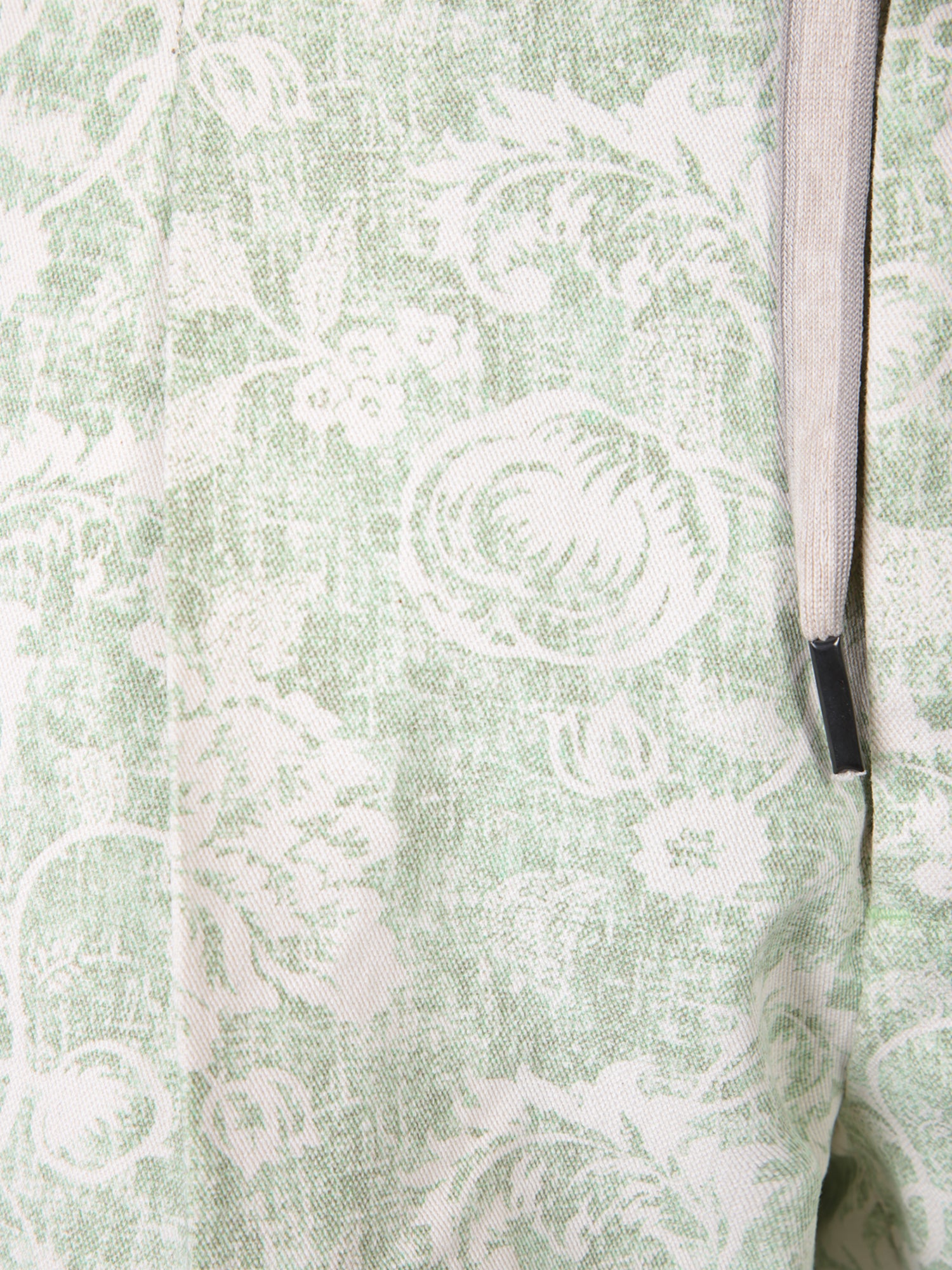 These elegant Dell'Oglio bermuda shorts feature a subtle floral design in cream and green shades, perfect for a distinguished summer look. They include a comfortable elastic waistband with contrasting drawstring and handy side pockets.