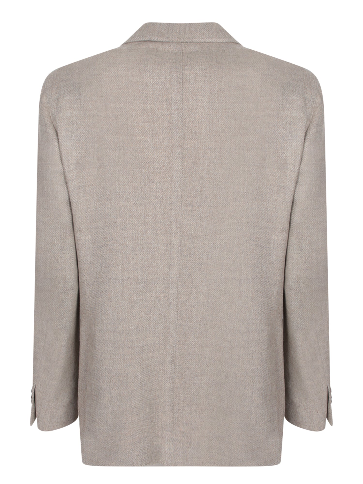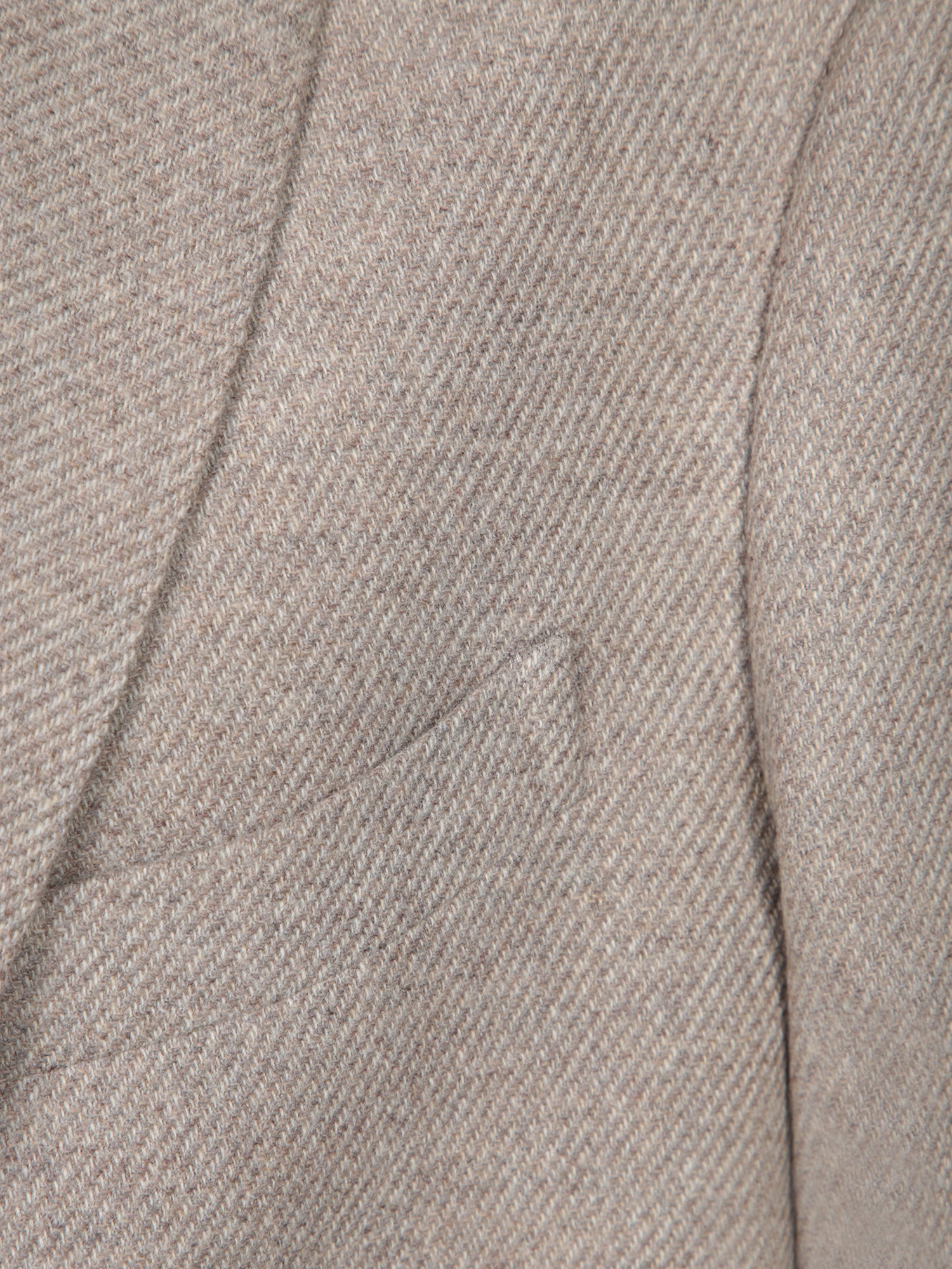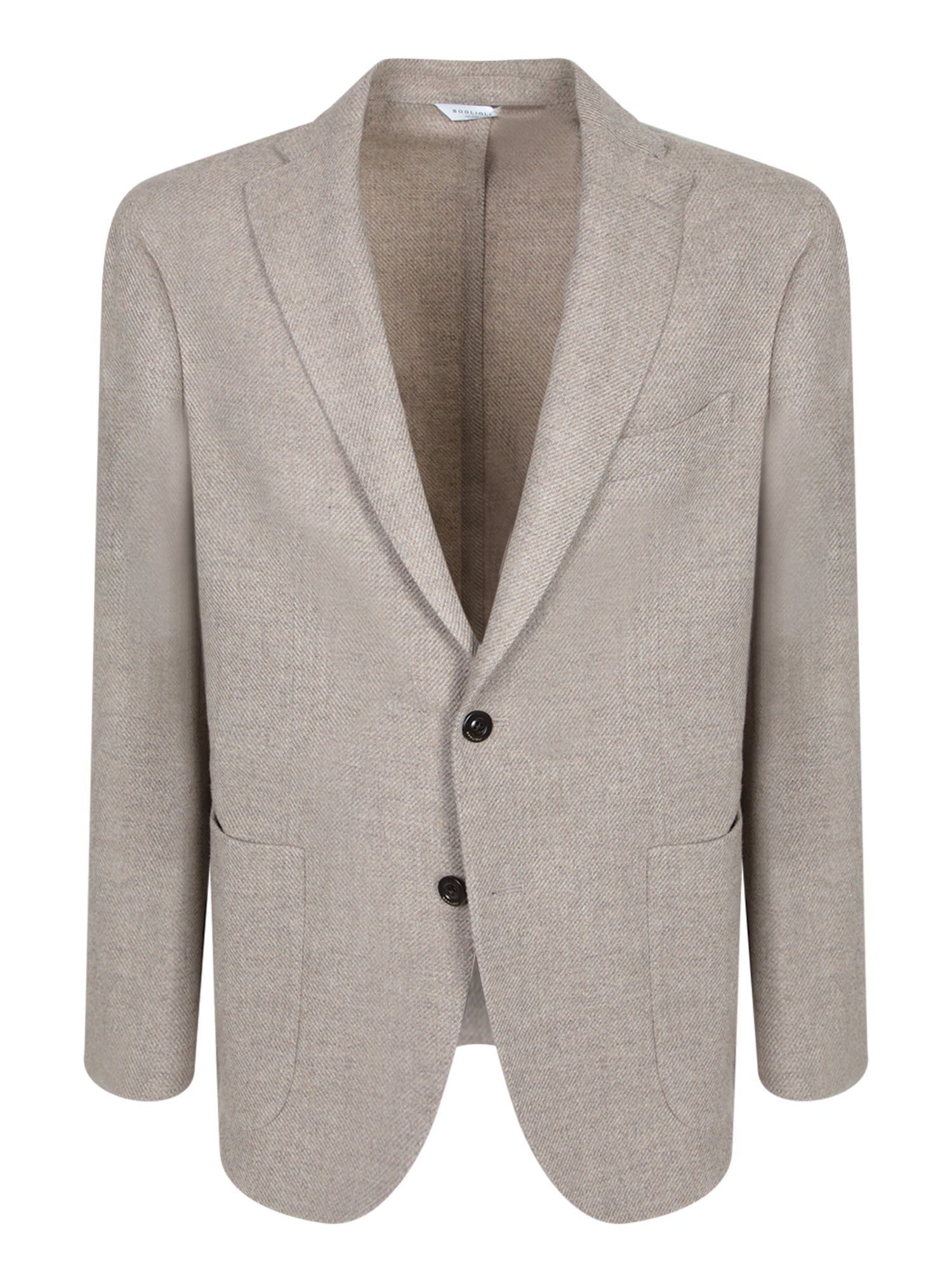 Classic cut wool jacket. Features two front buttons and welt pockets.