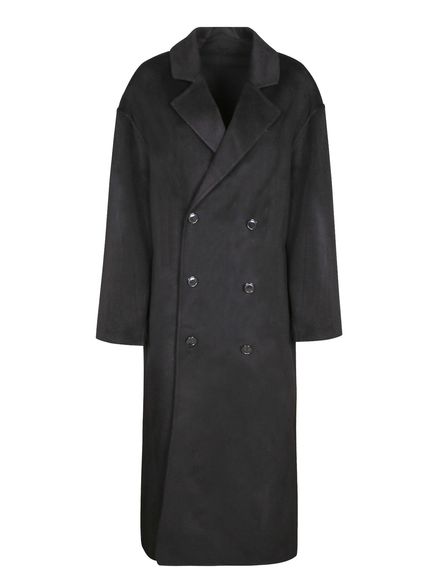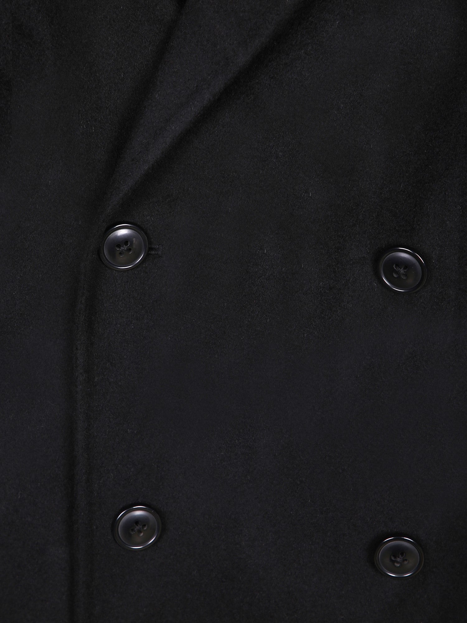 Double-breasted coat with button closure. Classic lapels. Pure wool cashmere finish.