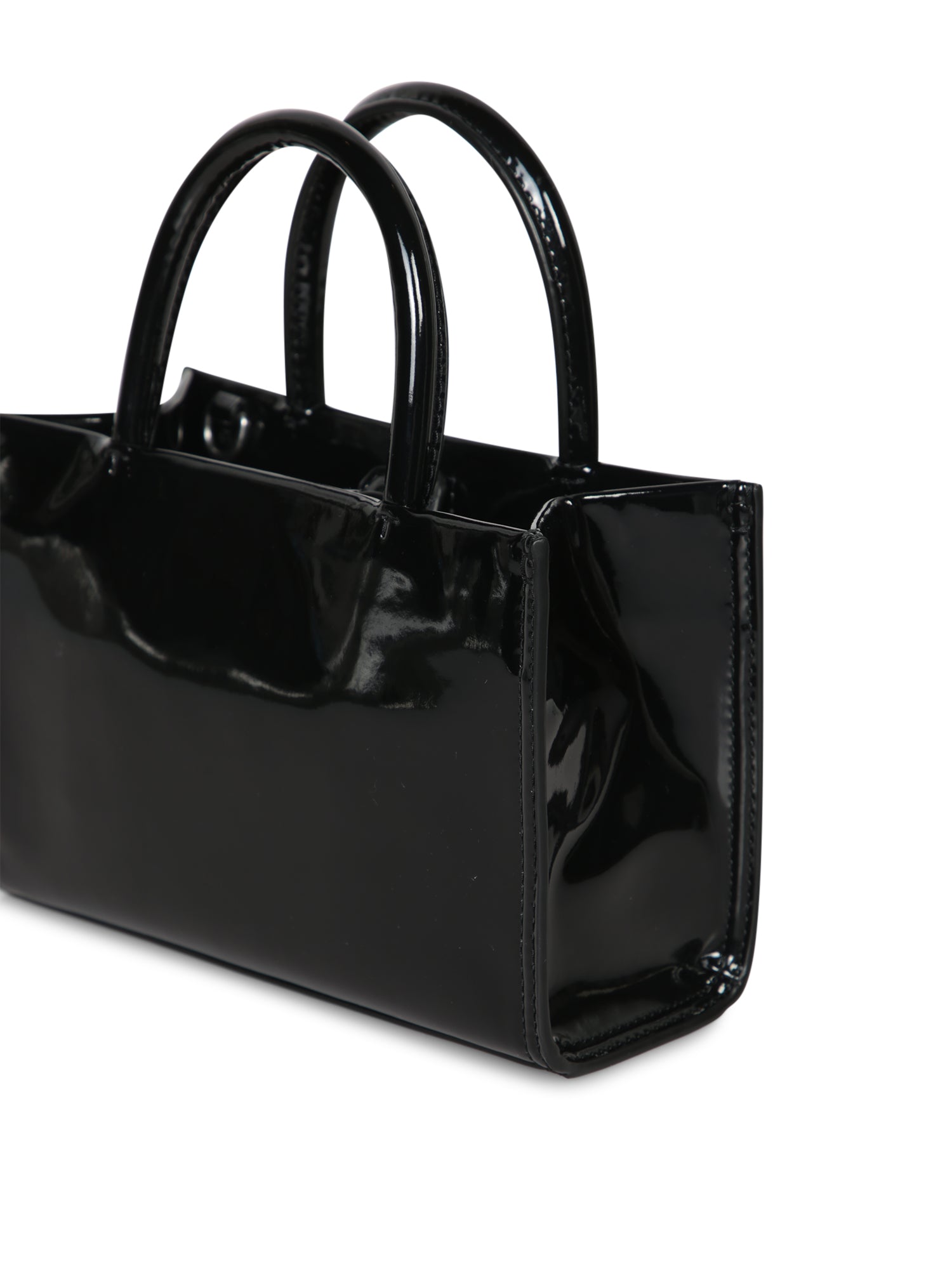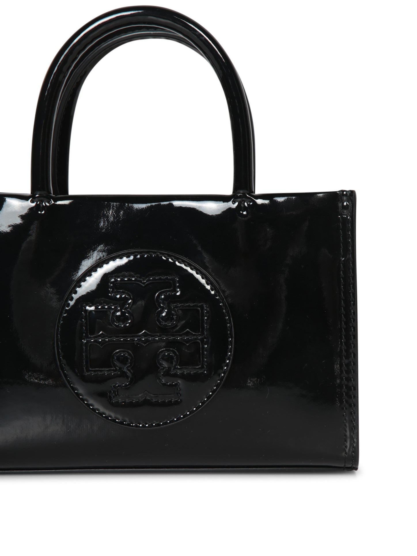 Define your style with the Tory Burch Ella Mini bag, crafted in sleek black patent with subtle details that enhance its sophisticated design.