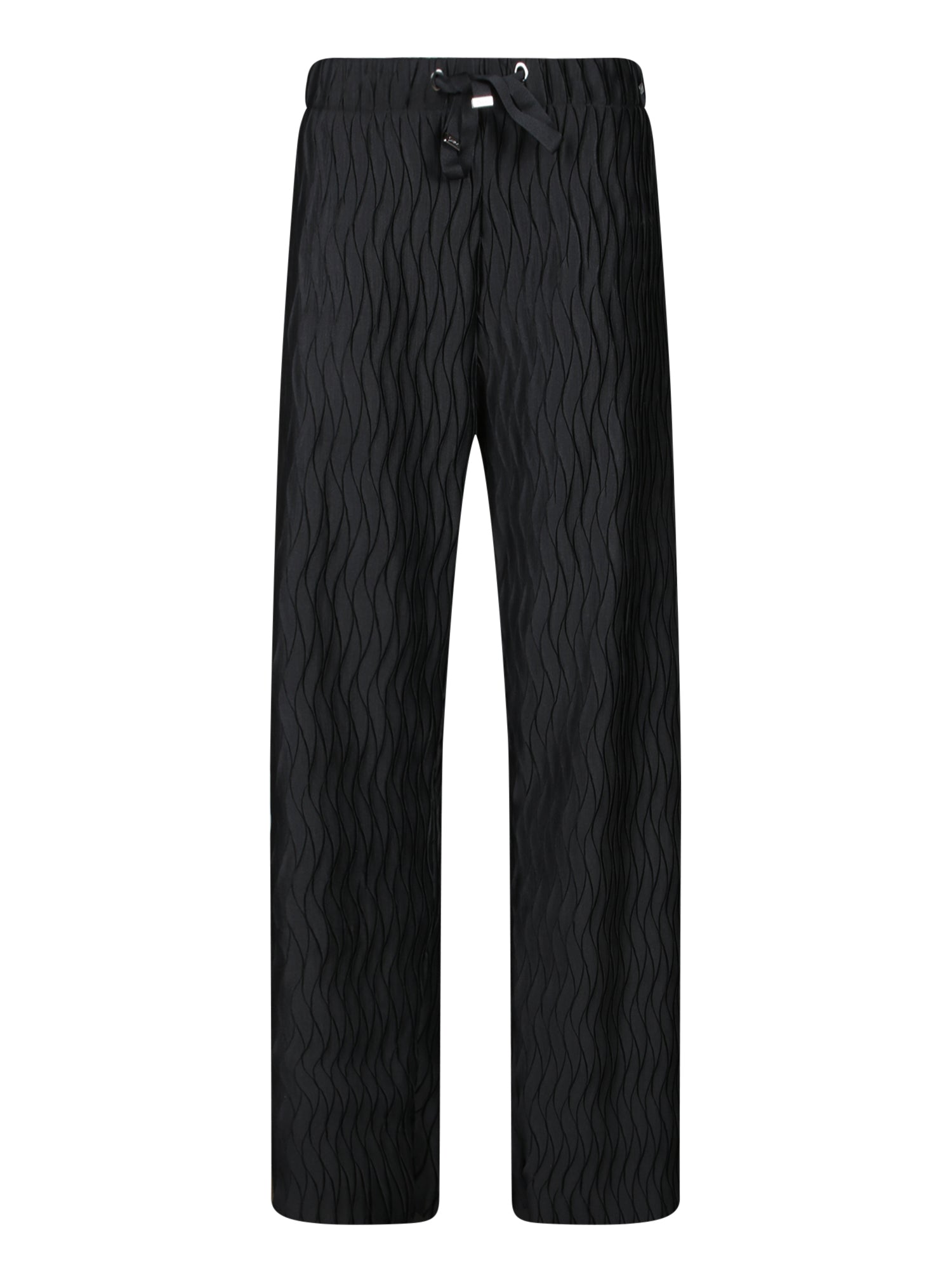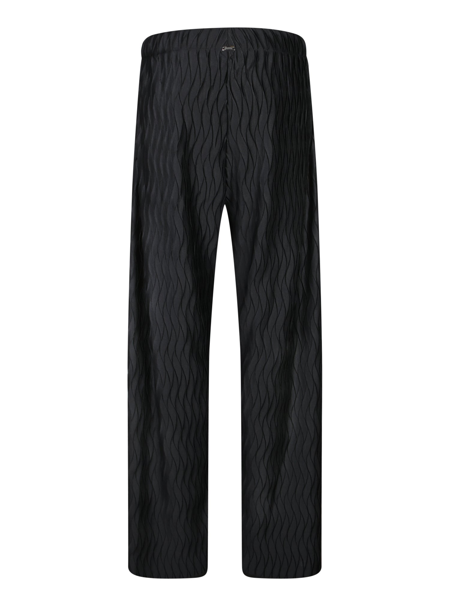 Embossed wave design jersey pants with elastic waistband and minimalist details.