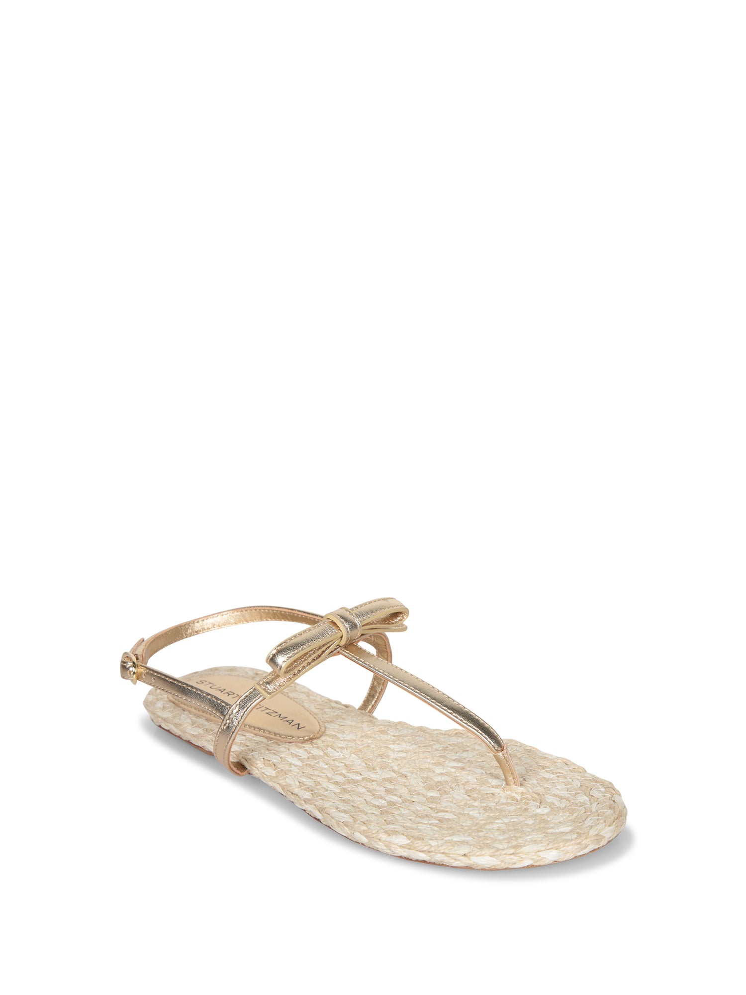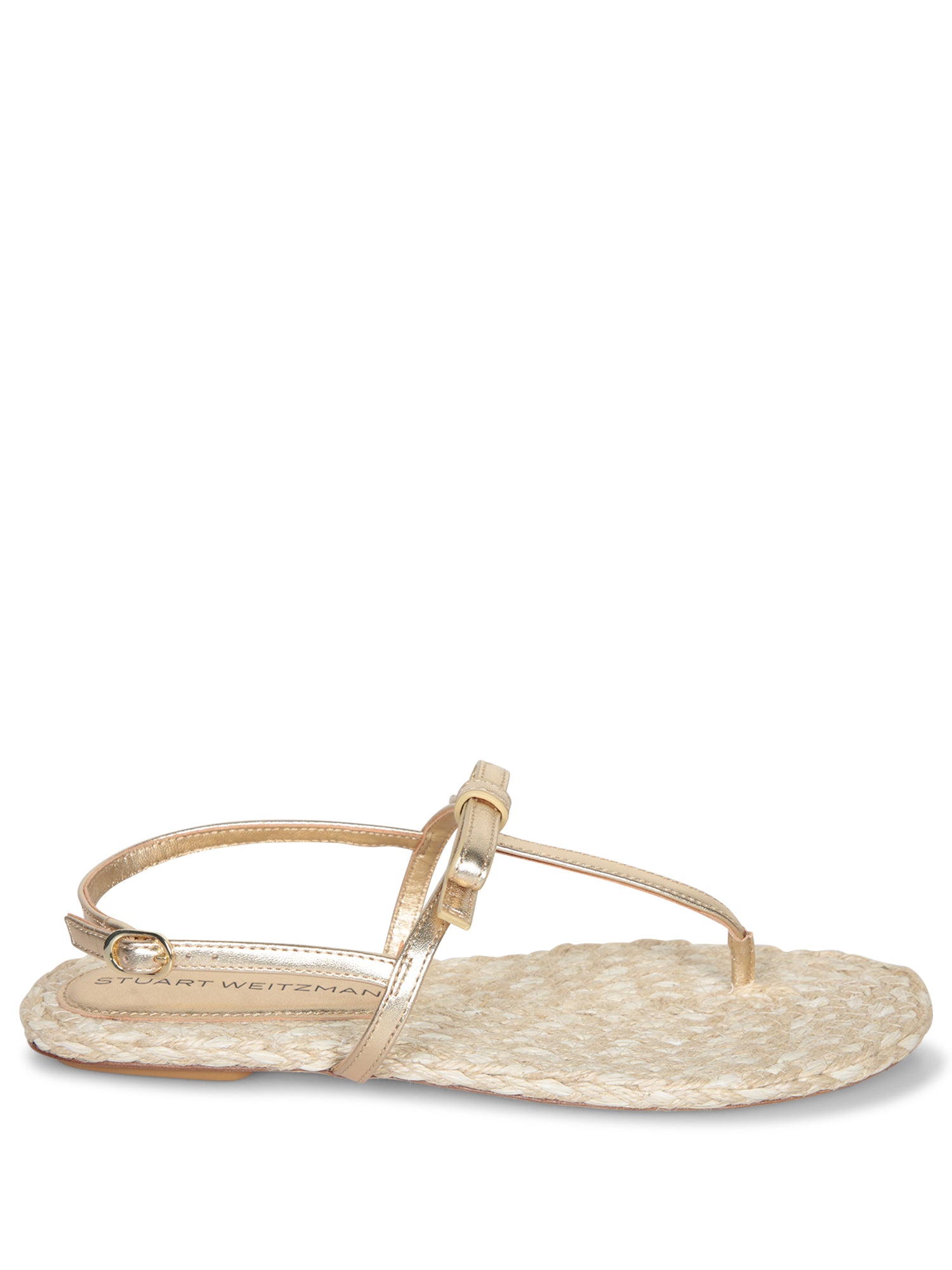 Crafted with an elegant metallic gold finish, these Stuart Weitzman sandals are a perfect choice for a sophisticated summer look. The rope sole adds a rustic yet chic touch.