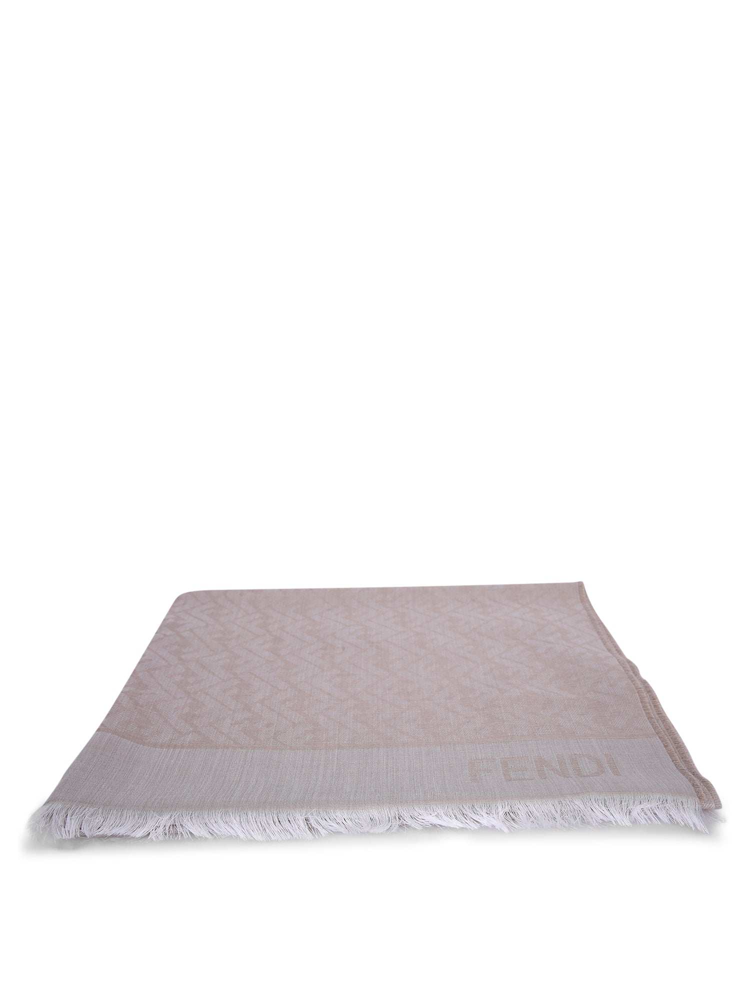 Luxury jacquard fabric scarf with integrated FENDI logo. Fringed edges.