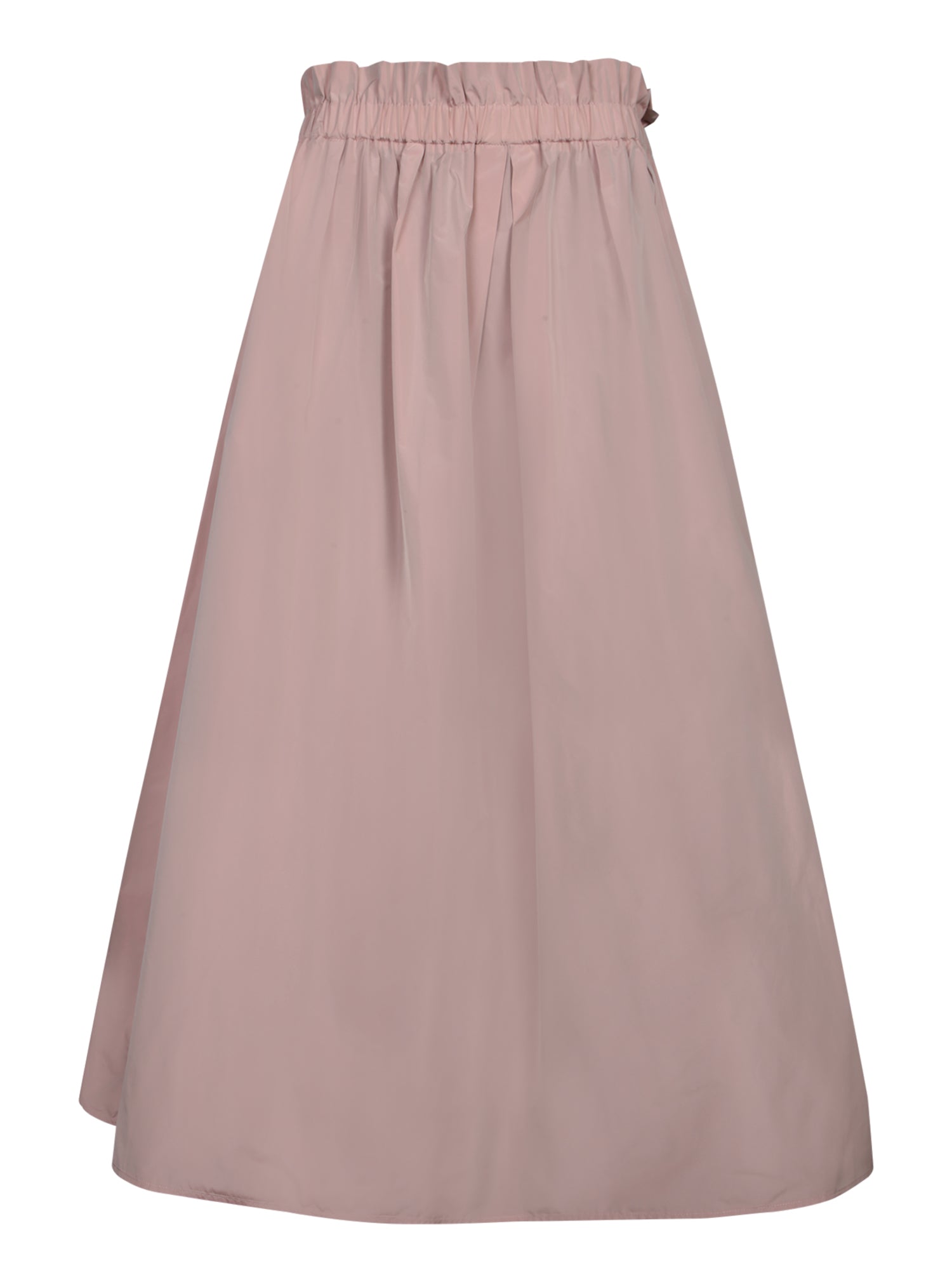 This elegant midi skirt by Herno is crafted from pink technical taffeta, featuring an elastic waistband for a comfortable fit. The flared cut adds a touch of femininity and movement.