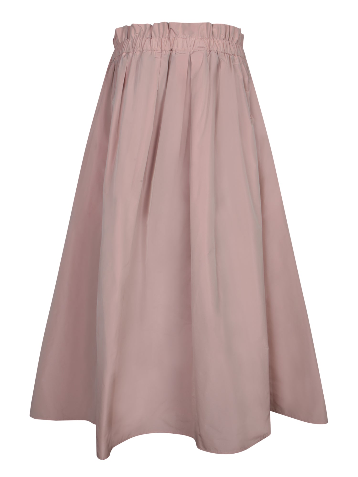 Flared midi skirt. Elastic waistband. Pink technical taffeta.