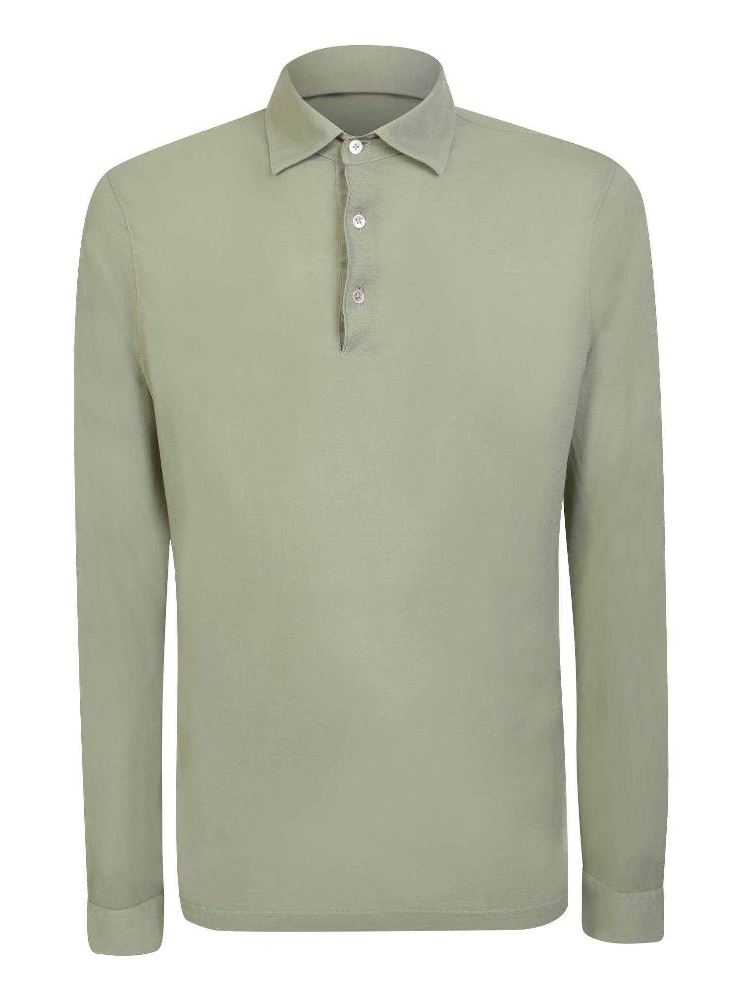 Fresh crepe sage polo shirt by Dell'Oglio classic fit, boasts an authentic and timeless design