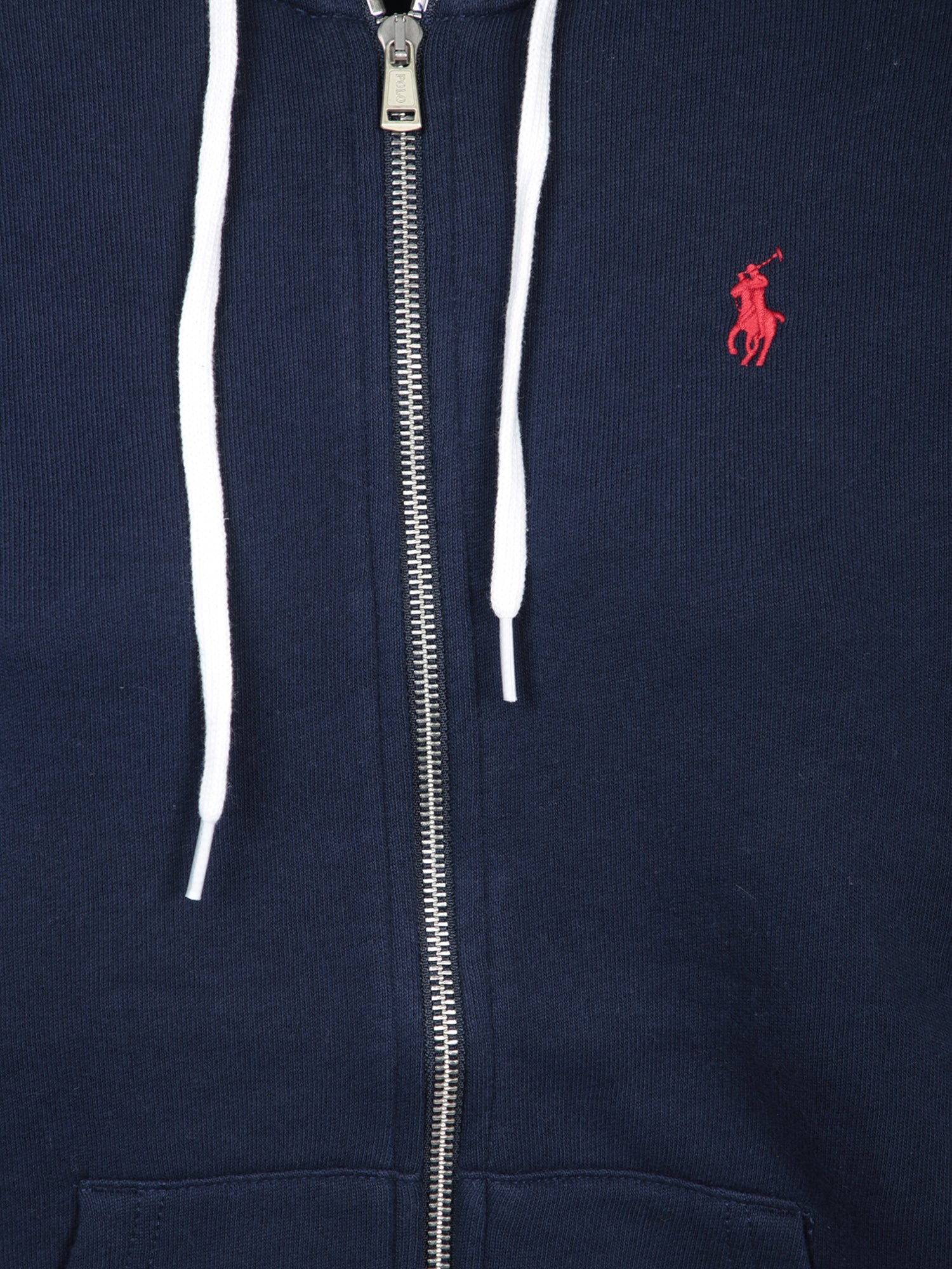 Soft fabric hoodie with front zip closure and kangaroo pockets. Embroidered logo on the chest.