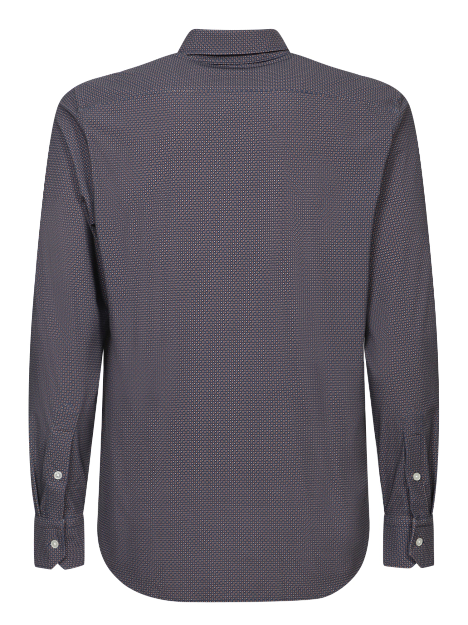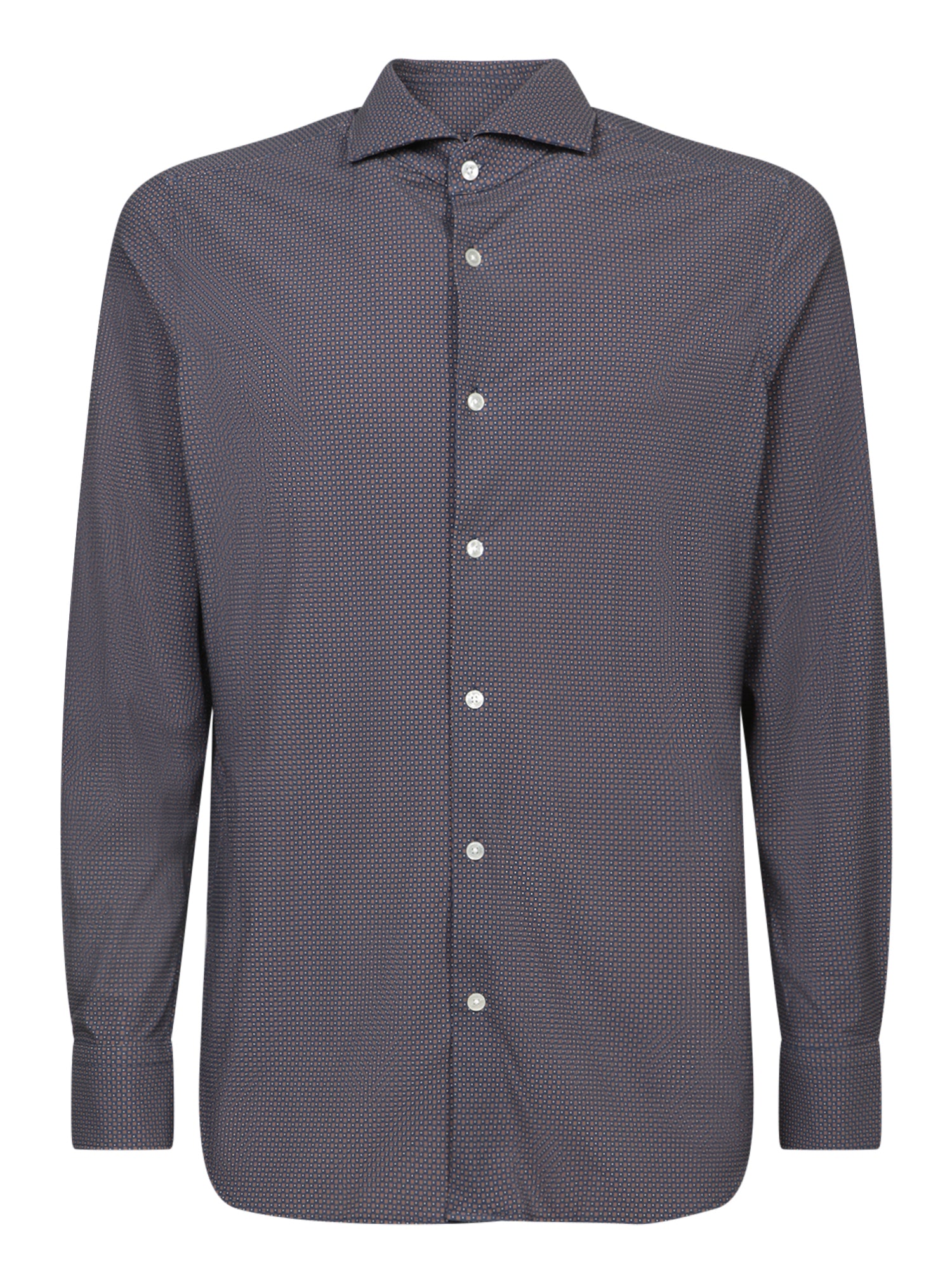 This elegant Delloglio shirt is defined by an intriguing blue and brown geometric fabric, complemented by a sophisticated design with a French collar and a glossy button front closure for a contemporary and refined appearance.