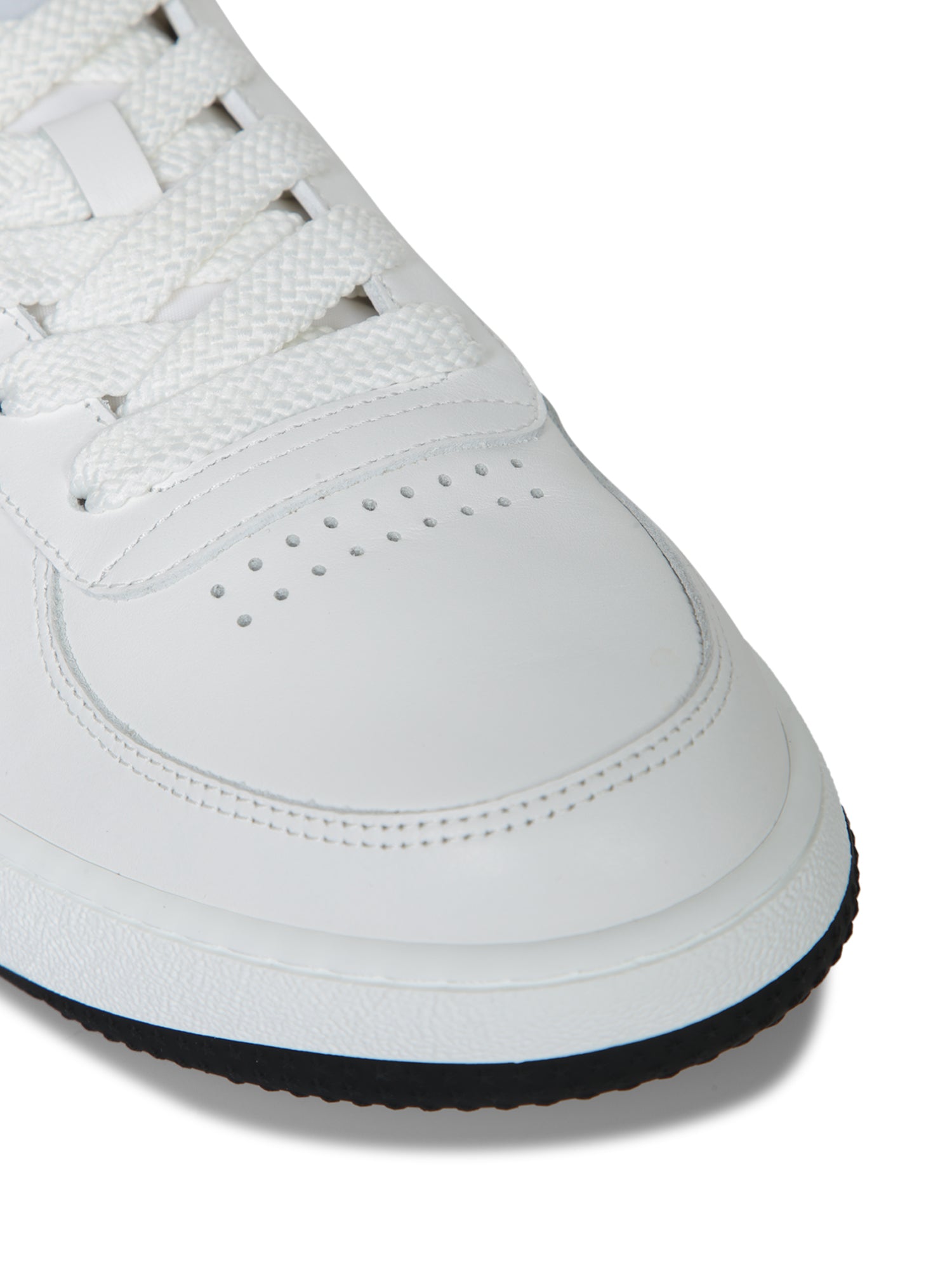 Front lace-up closure. Detailed logo. Black and white color combination.