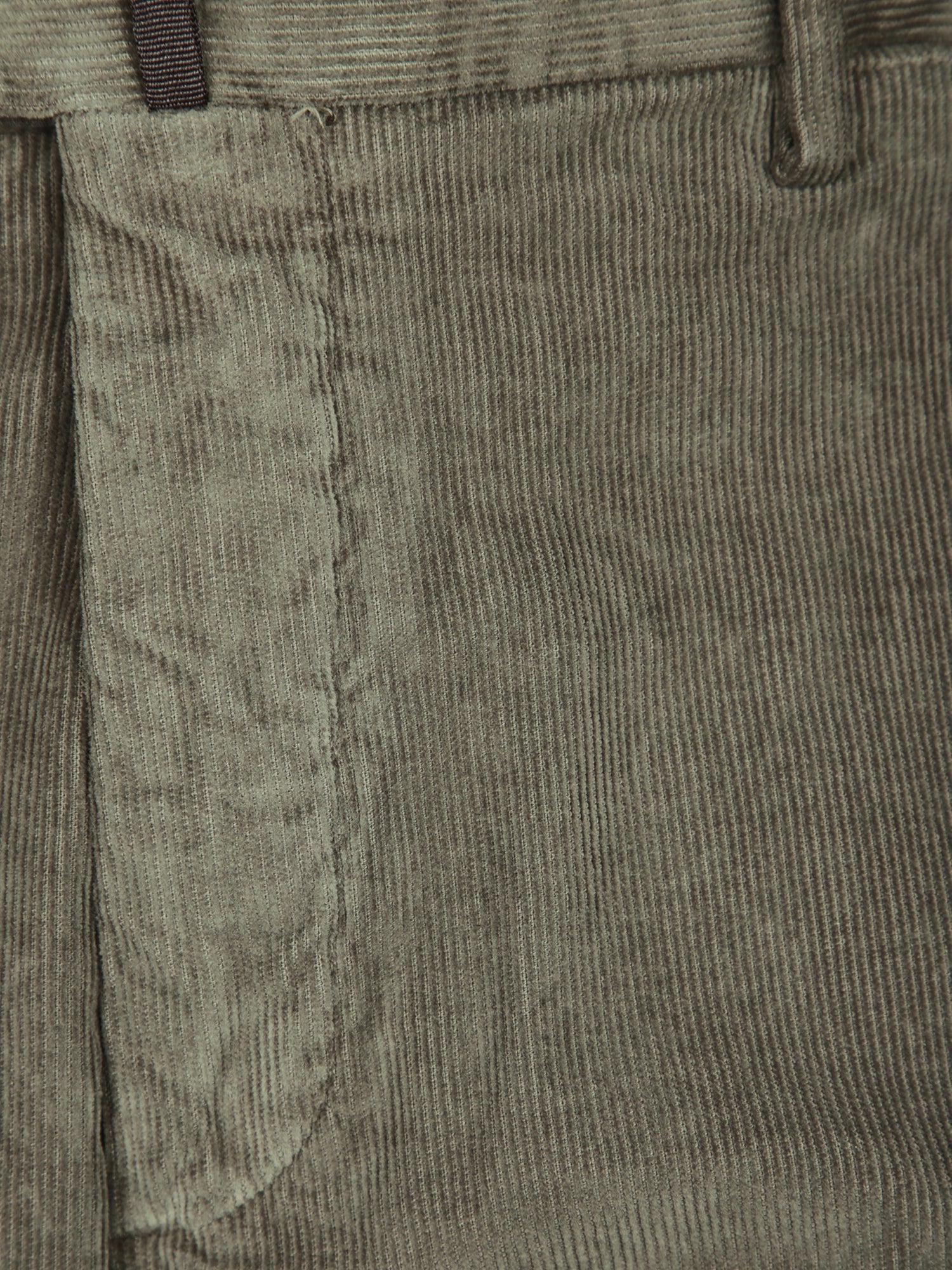 Regular fit with zip and button front closure. Side and back pockets. Belt loops.