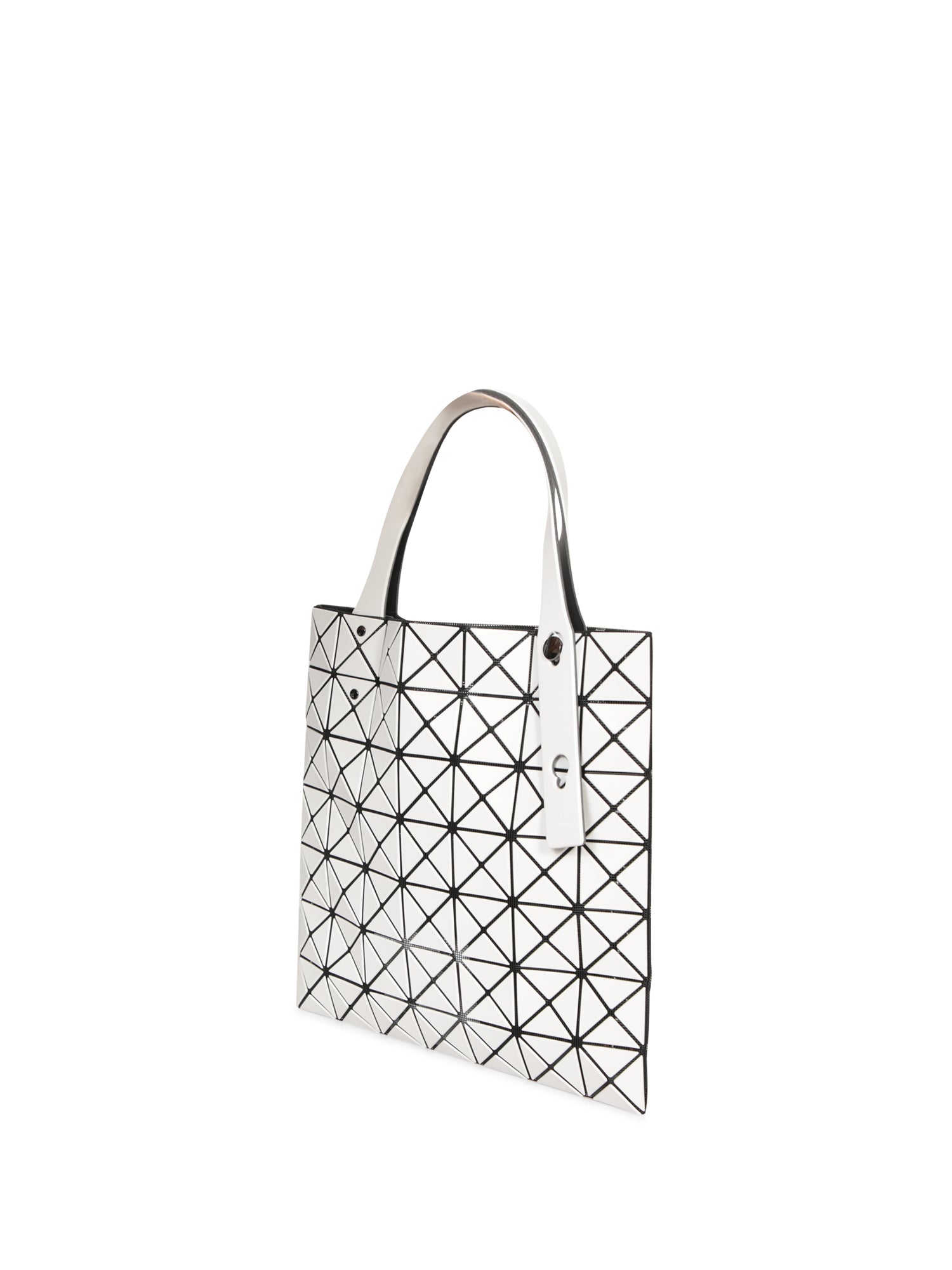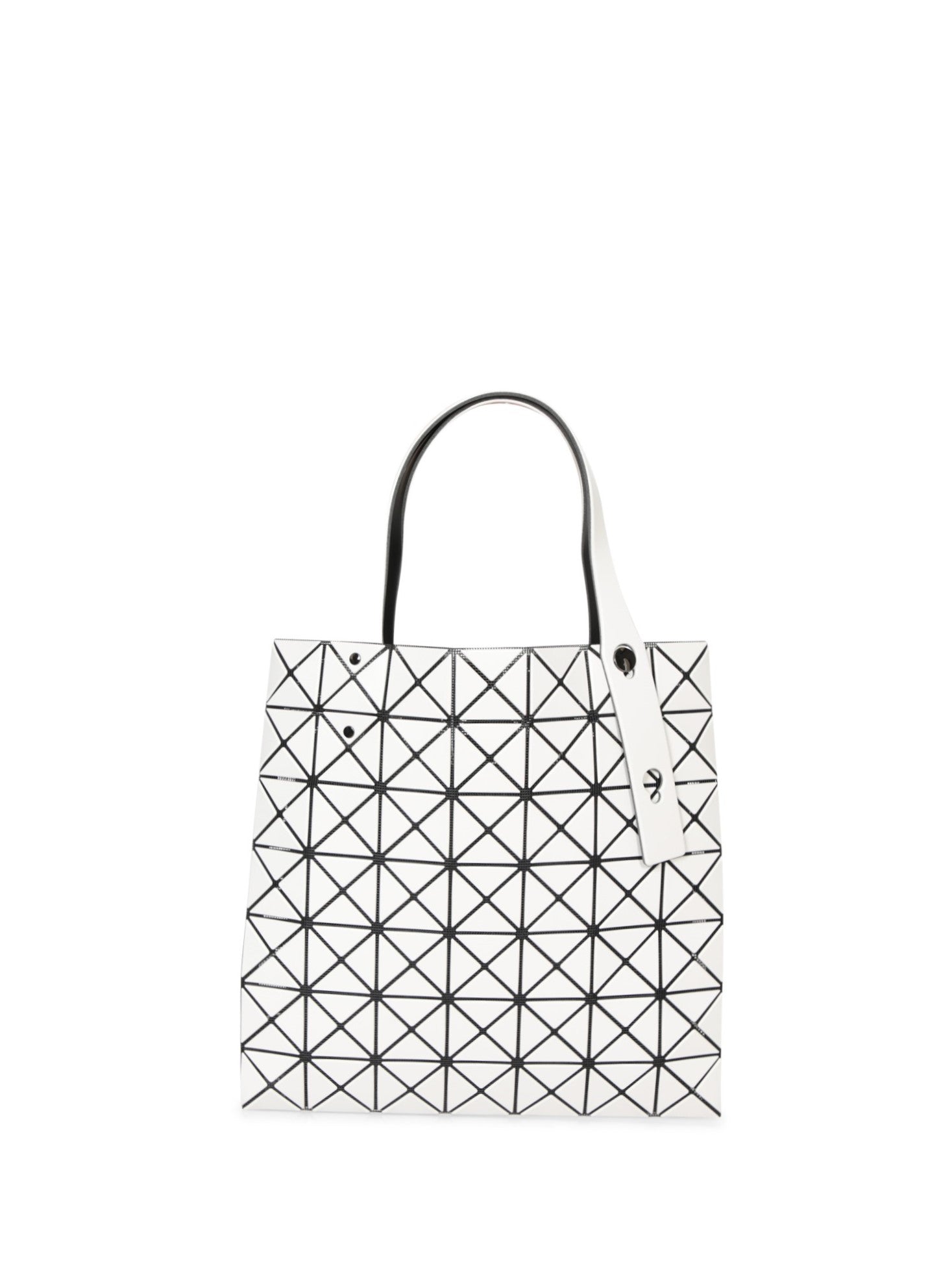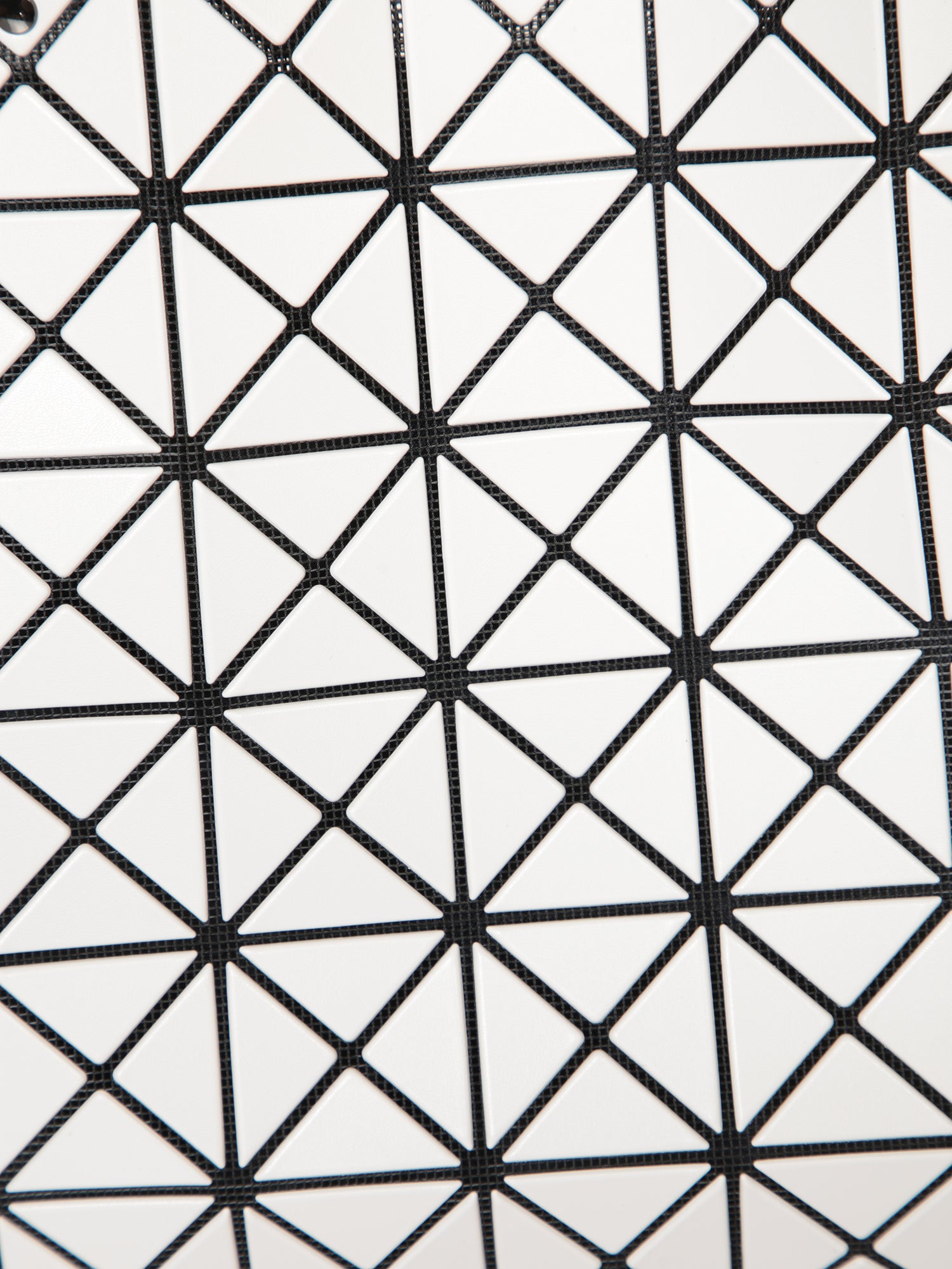 This chic Issey Miyake tote bag boasts a distinctive light grey geometric design with a matte finish. Comfortable with its contrasting tone handles, it is versatile and practical without sacrificing a touch of uniqueness.