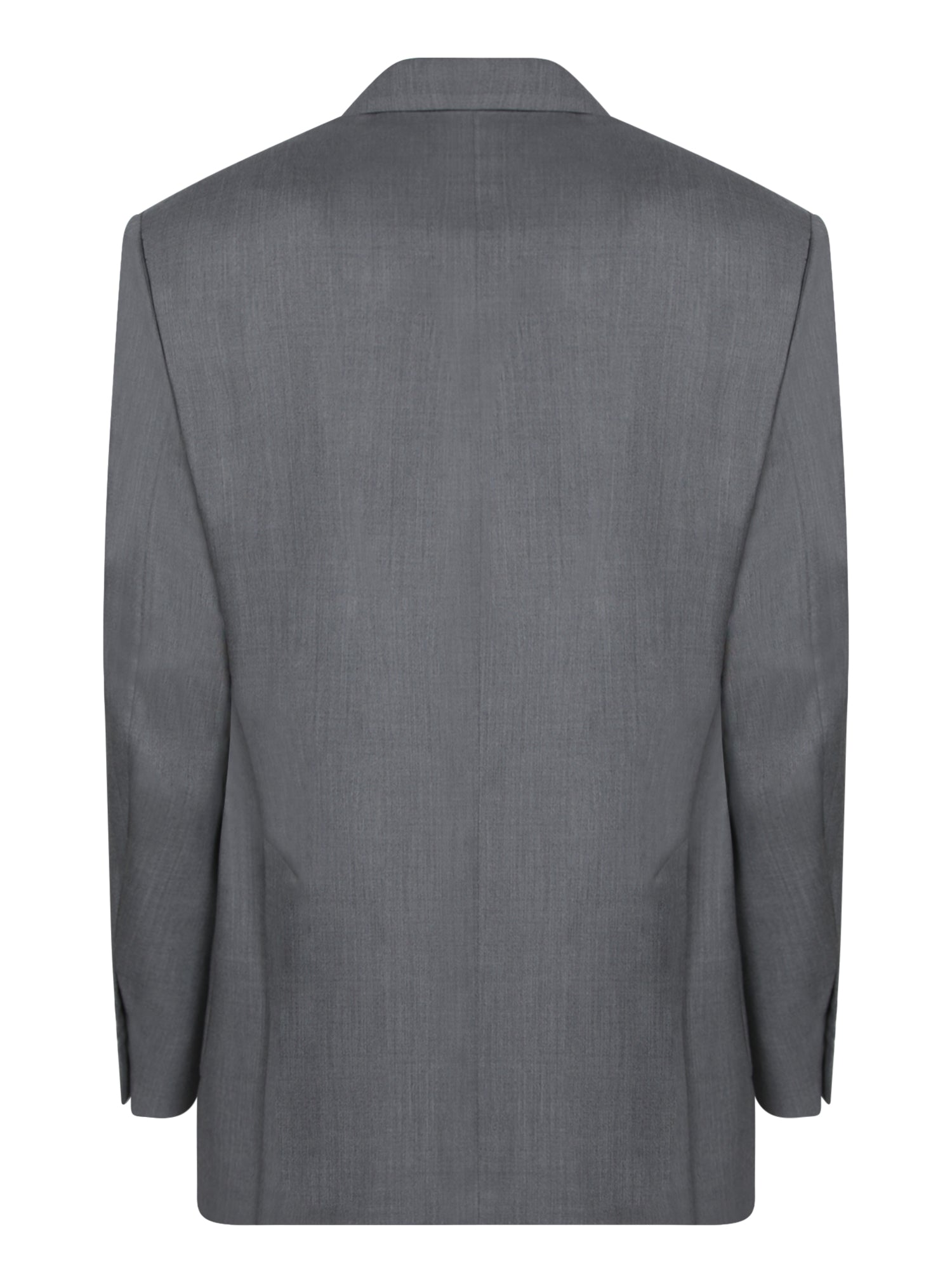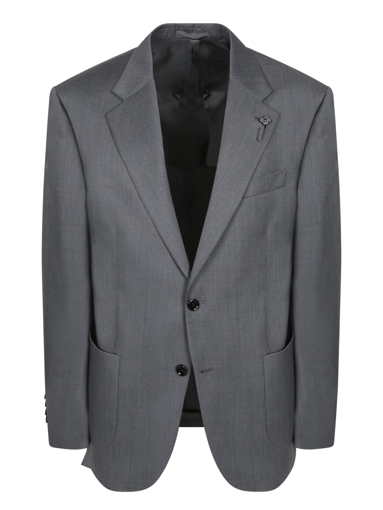 Twill wool jacket. Features a notched lapel, three-button closure, and welt pockets.