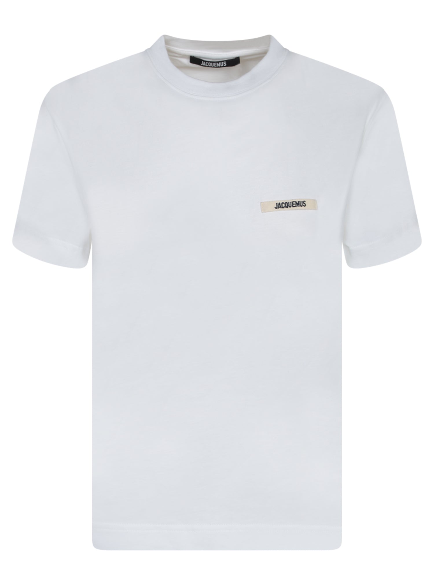 Short sleeves. Crew neckline. Jacquemus logo patch on the chest.
