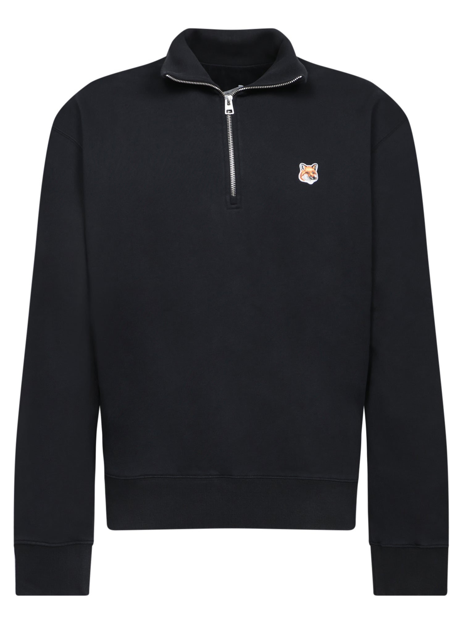 Black sweatshirt in soft fabric. Raised collar with half-zip closure. Fox logo detail on the front.