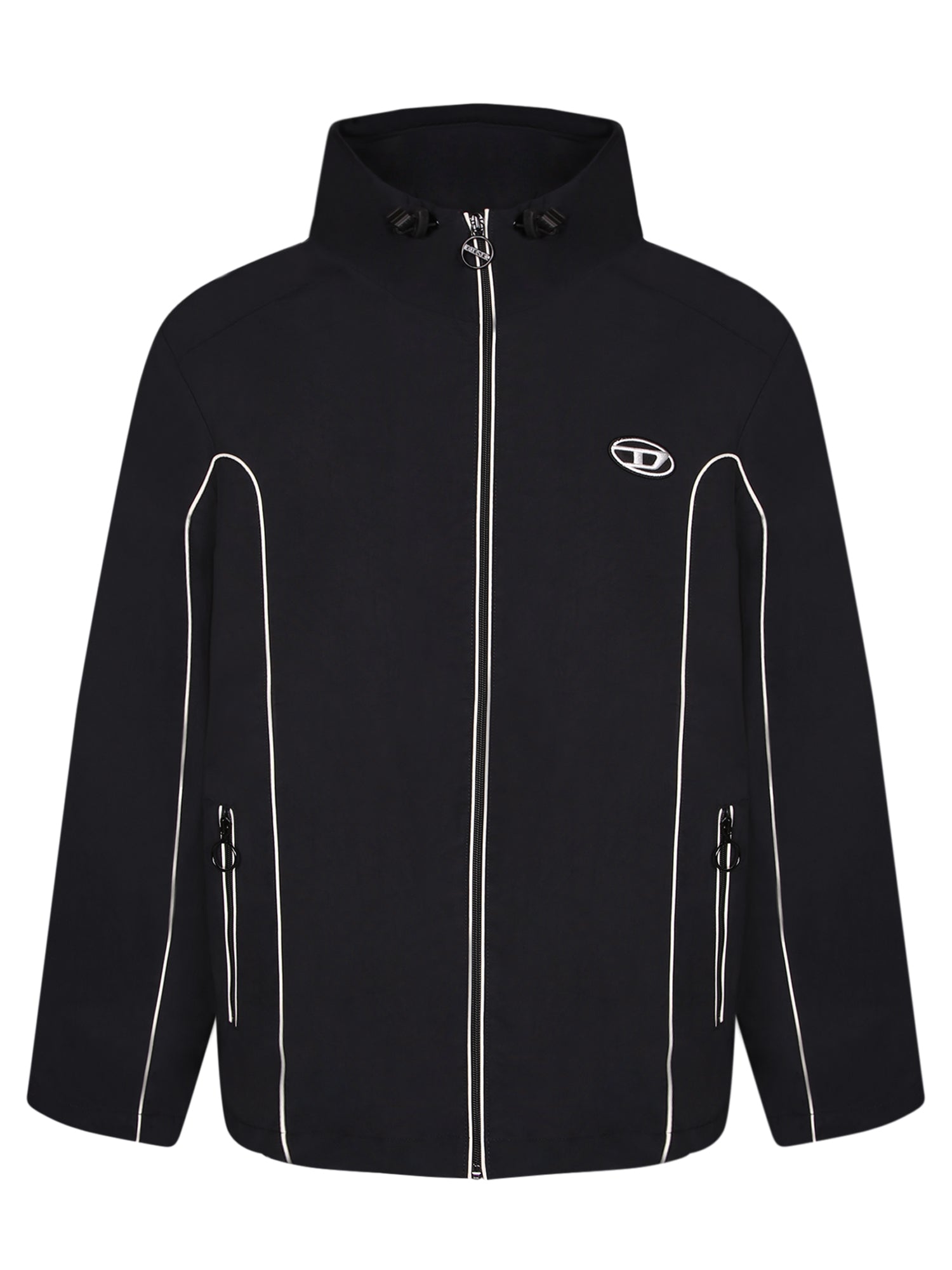 Hooded jacket with zipper closure. Reflective details and DIESEL logo on the chest.