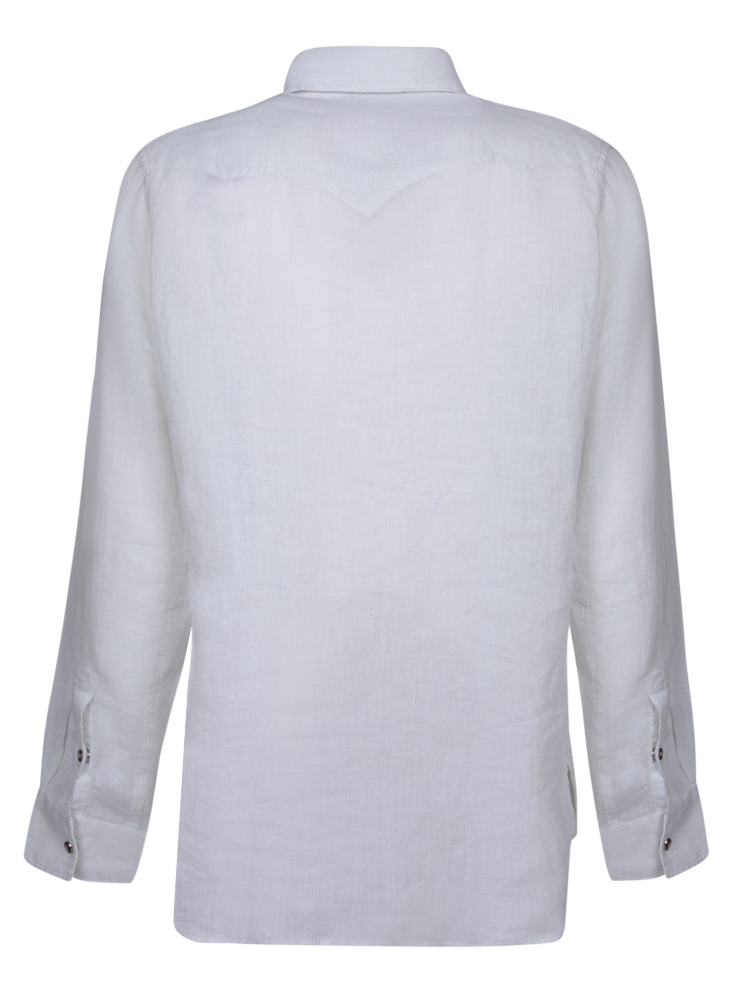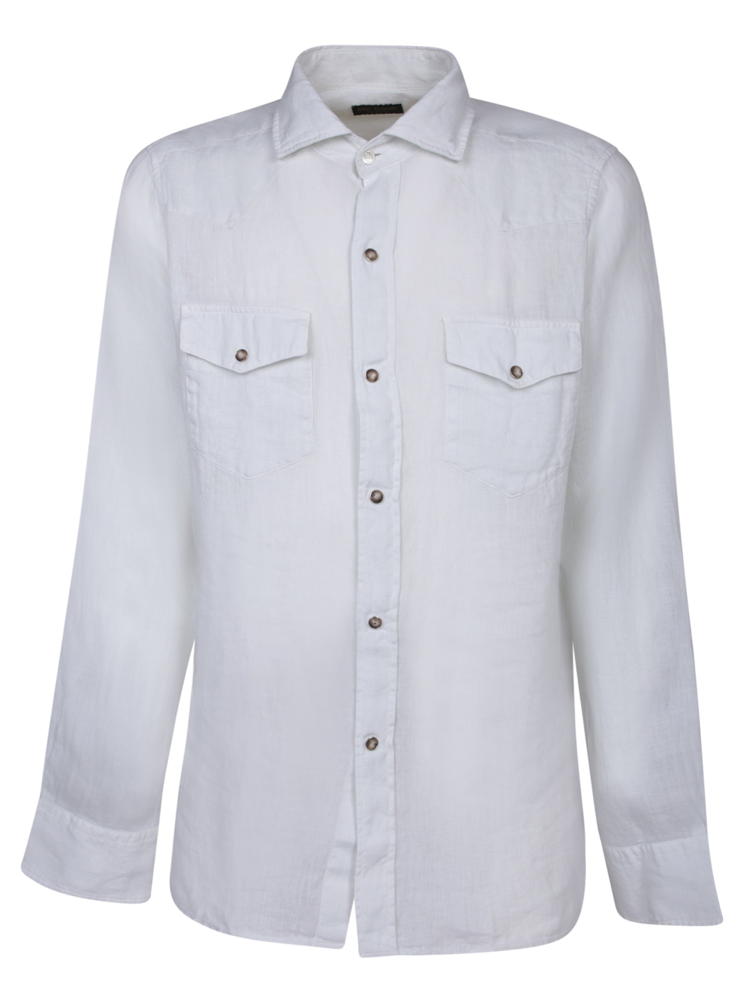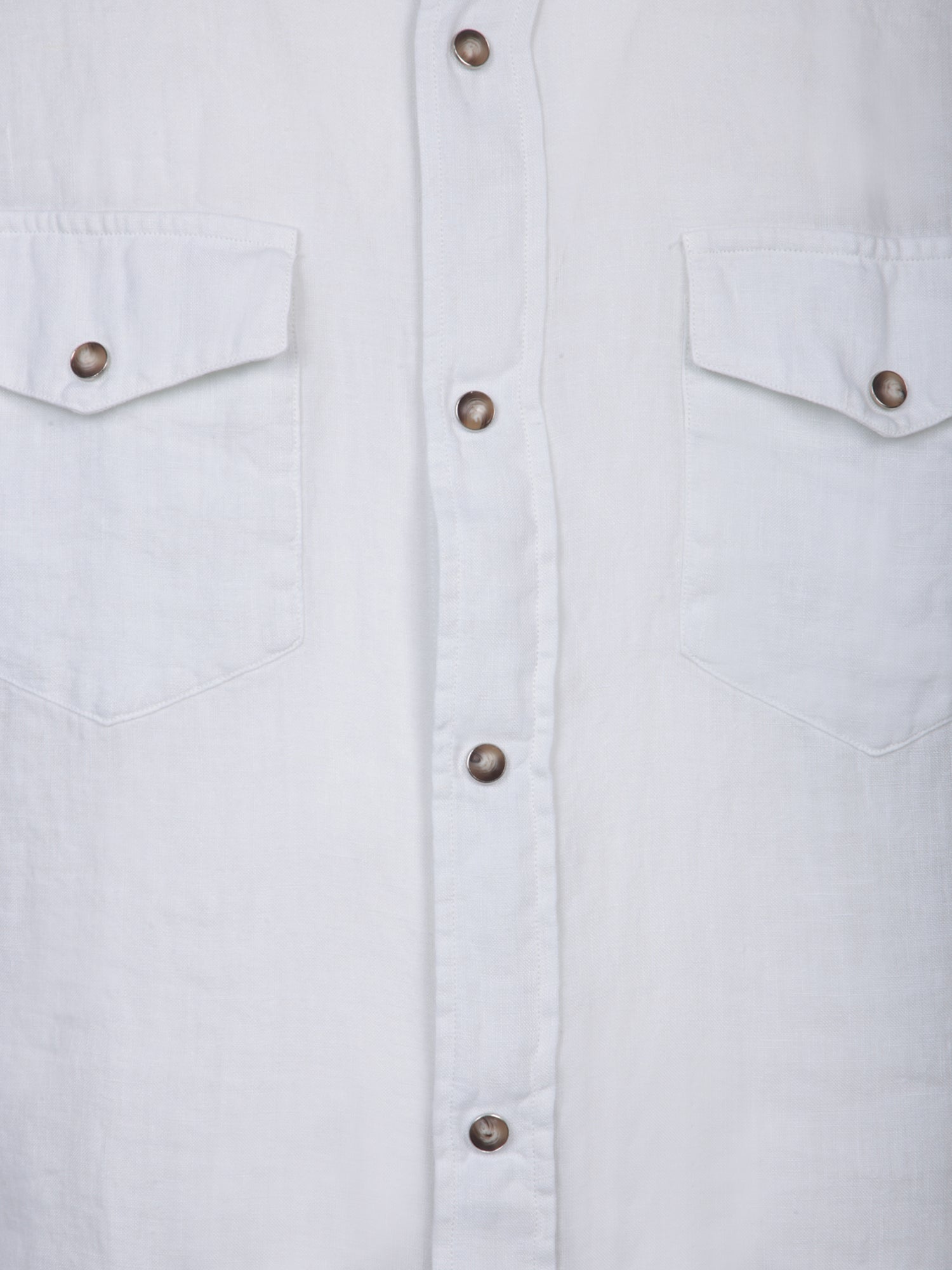 Clean lines and natural fabric define the Dell'Oglio Ice Linen Texan Shirt. Its essential design is enhanced with practical details like applied pockets, embodying a timeless casual-chic style.