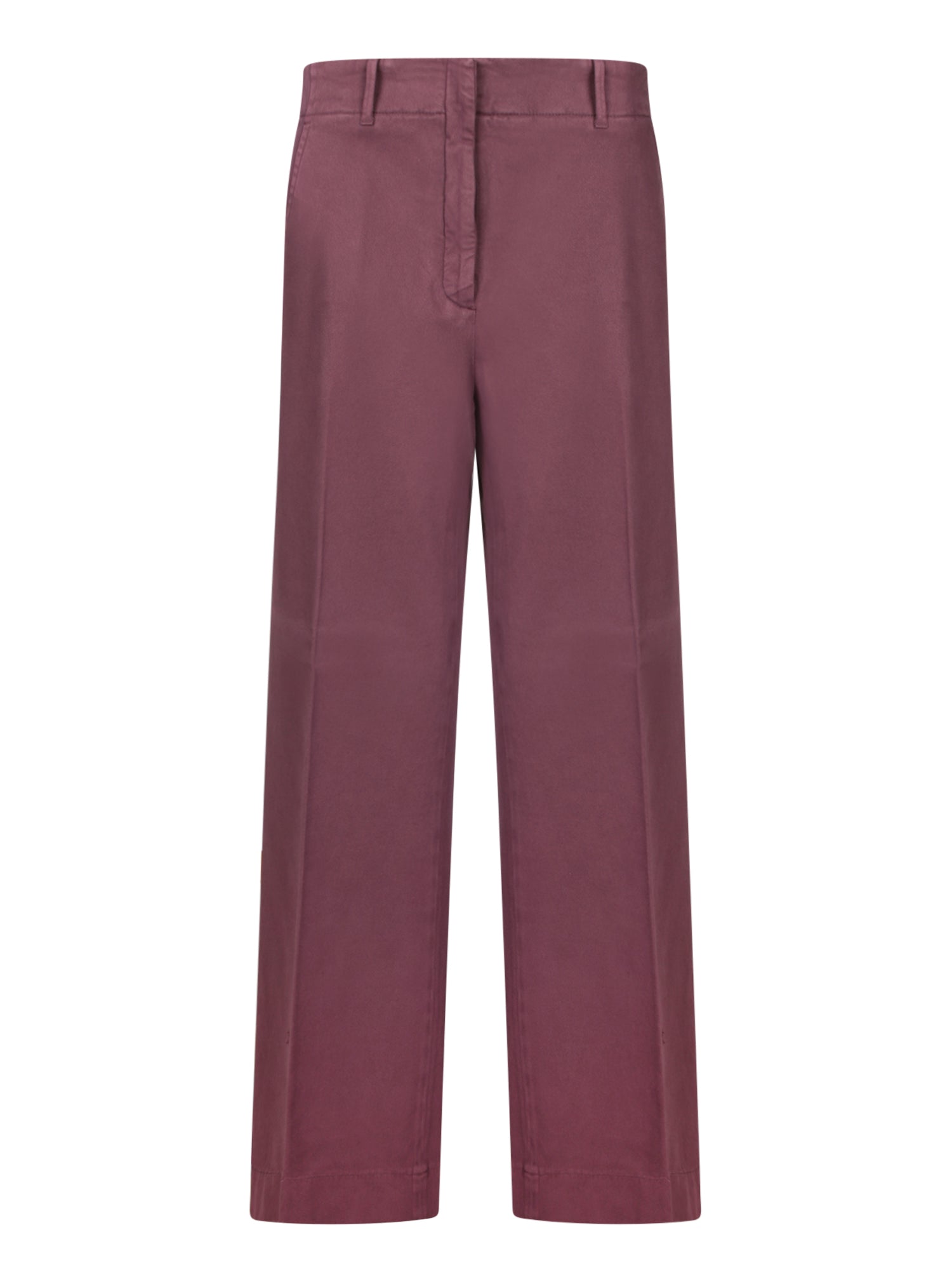 Brushed cotton fabric trousers. Zip and button closure. Angled side pockets and two back welt pockets.