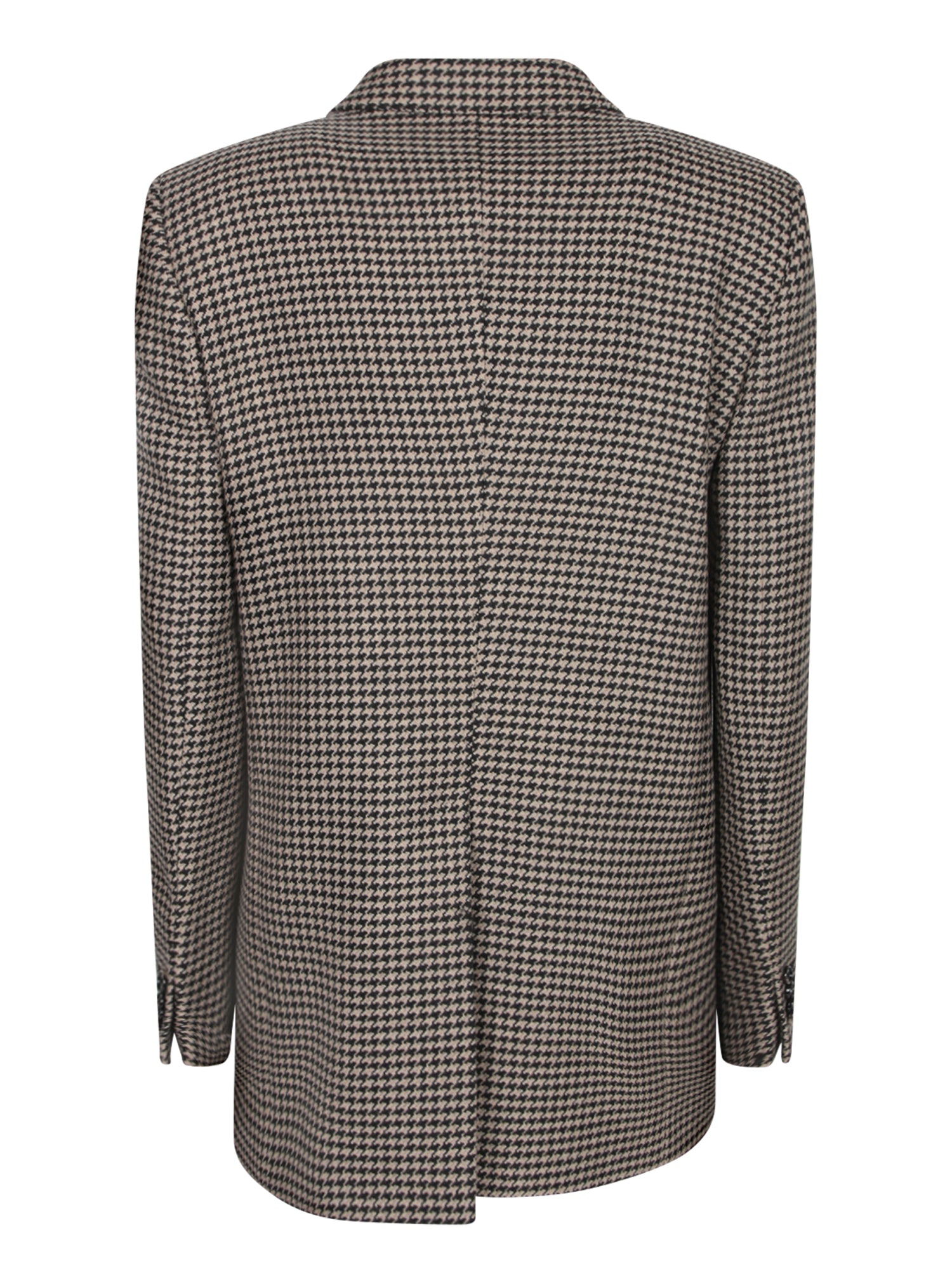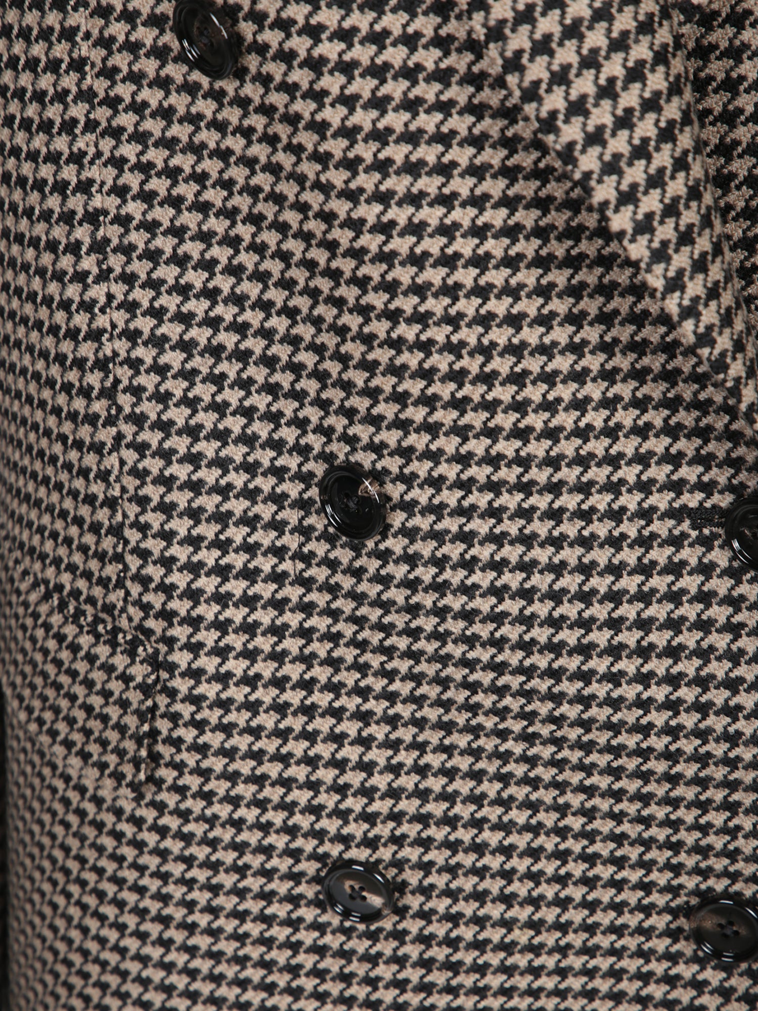 Double-breasted jacket. Houndstooth pattern. Wool blend fabric.