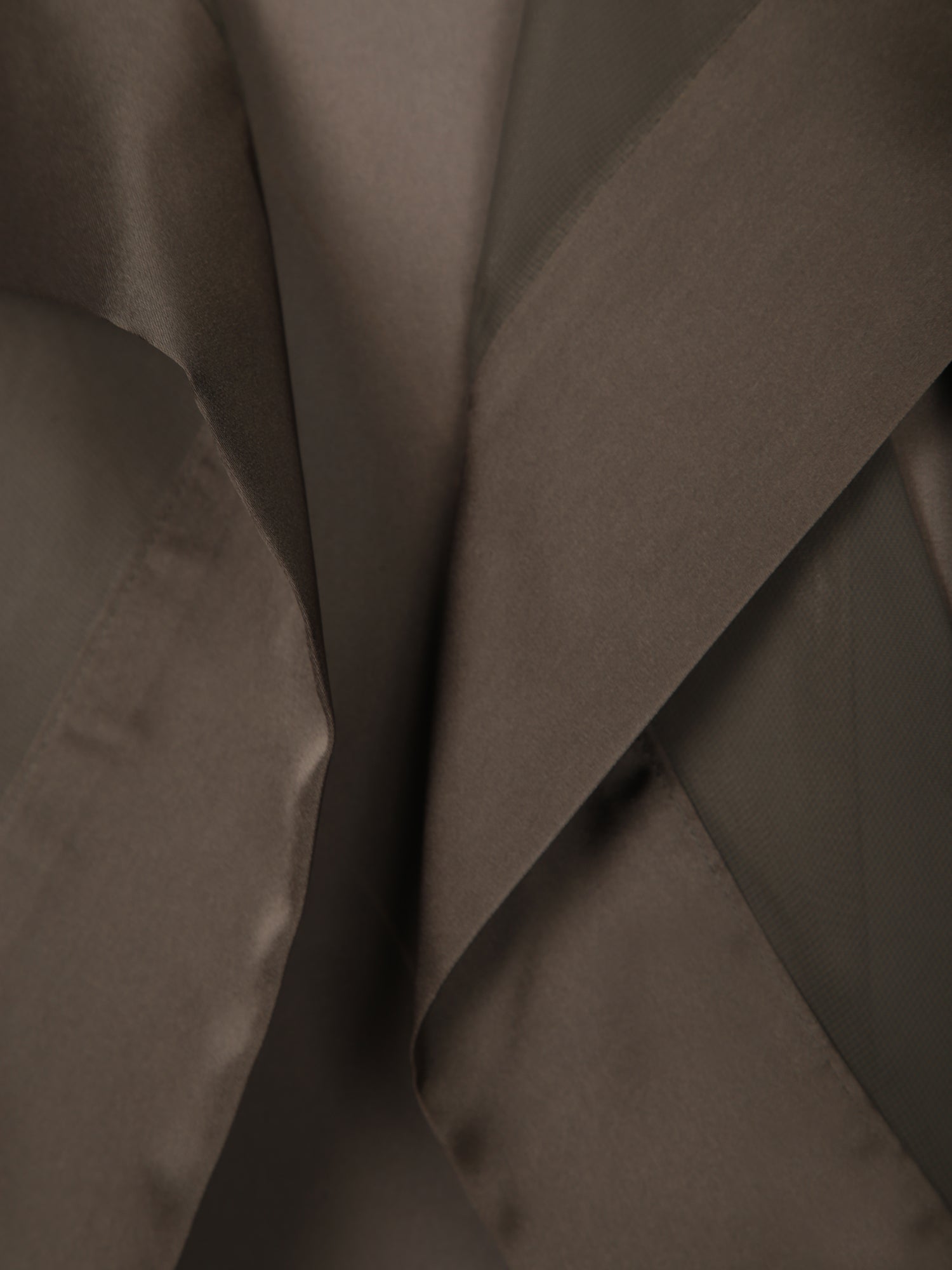 Sleeveless tank top. Crafted from satin chiffon. Khaki color with asymmetrical layered details.