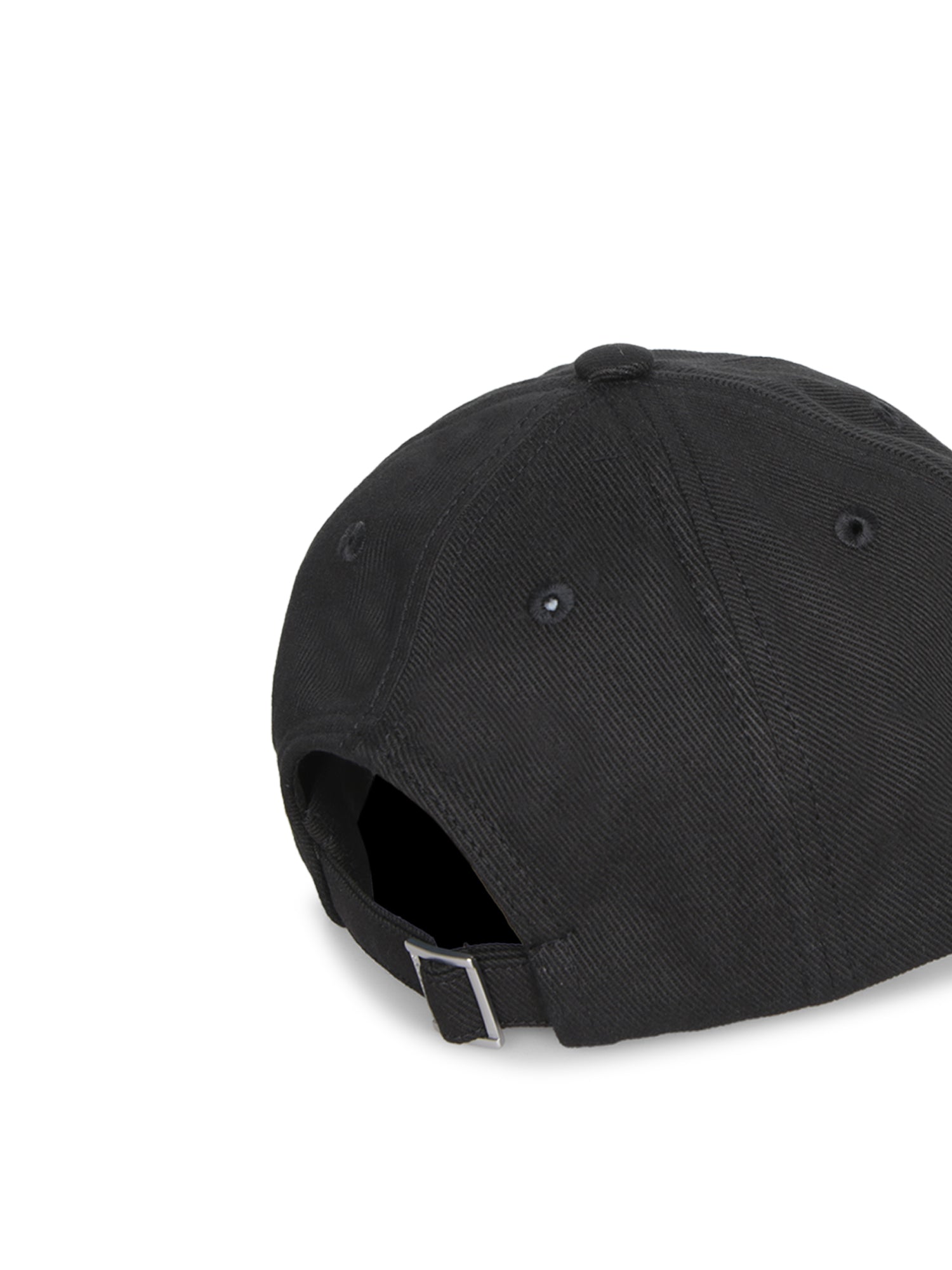 Black technical fabric hat, white Jacquemus logo, adjustable strap.