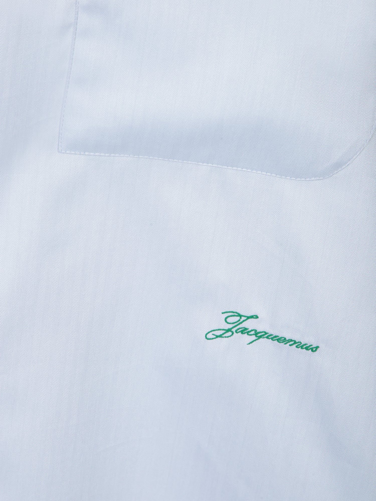 Explore effortless elegance with Jacquemus' La Chemise Cuadro Celeste, perfectly balancing sophistication and casual style with its subtle embroidery and beautiful light blue hue.
