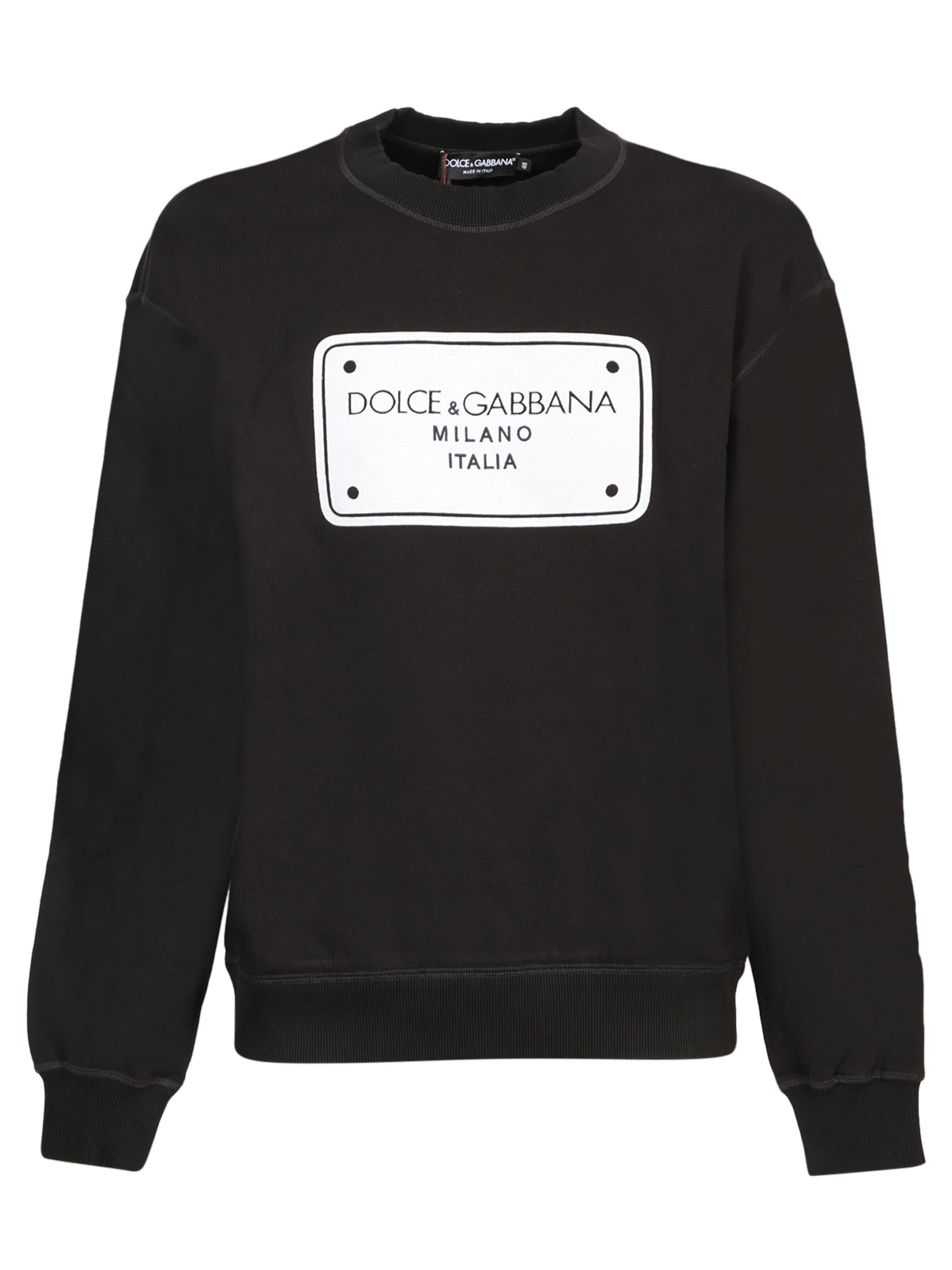 This sleek black sweatshirt from Dolce & Gabbana features a distinctive front logo plaque, enhancing a sophisticated urban style with a comfortable fit.